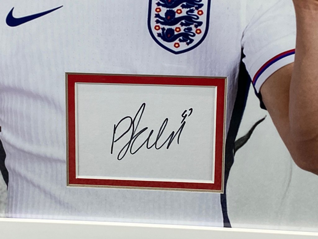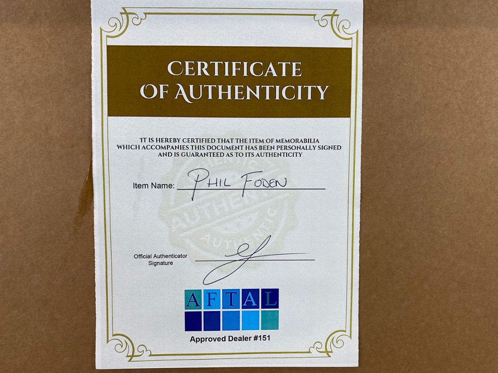The presentation frame is carefully crafted to highlight the photograph, ensuring that every detail of Foden in his England kit is vividly displayed. The signature, authenticated and certified, guarantees the item's legitimacy, providing assurance to collectors and fans. The frame's design not only enhances the visual impact but also protects the picture, ensuring it remains in pristine condition over time.