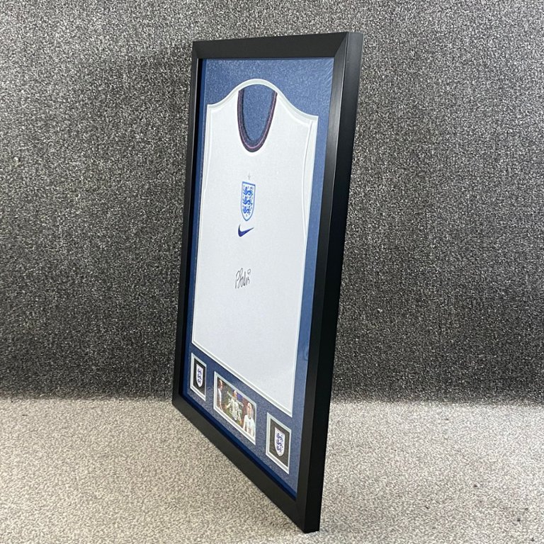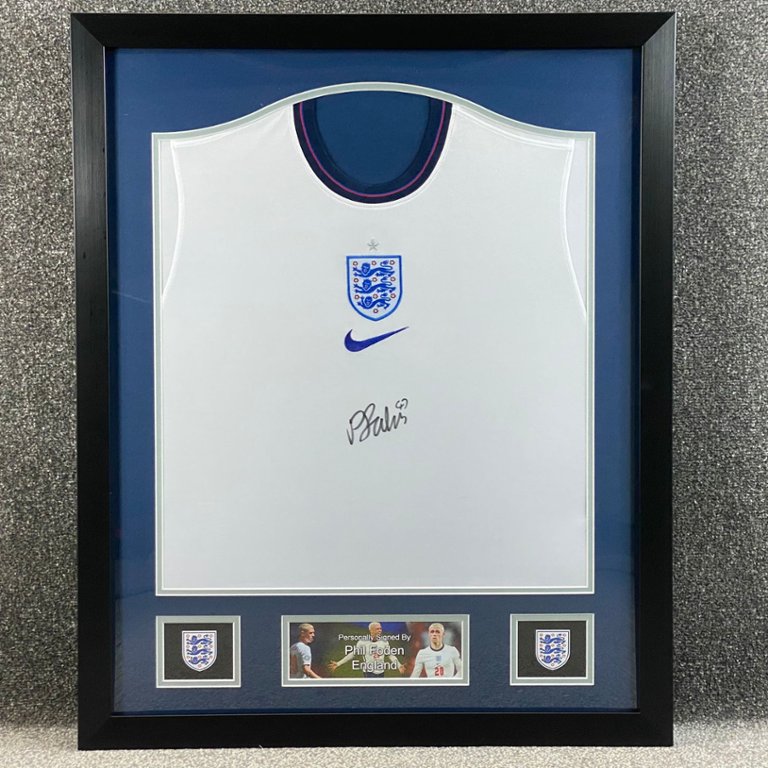 This framed treasure not only honours Phil Foden's burgeoning career but also embodies the pride and passion of English football. Whether showcased in a sports enthusiast's sanctuary or adorning the walls of a home or office, this framed shirt commands attention and admiration, serving as a captivating centrepiece wherever it resides.