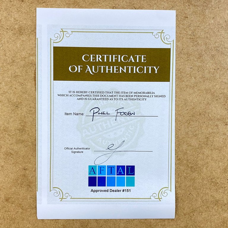 At its core lies an official England football shirt personally signed by the exceptional Phil Foden. Each signature is meticulously authenticated, ensuring its genuine nature and preserving its value as a prized collector's item.