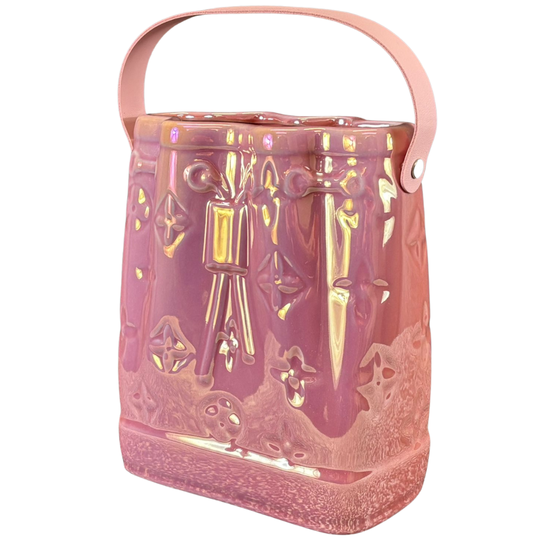 - > Pink Ceramic Handbag Vase with Pink Handle