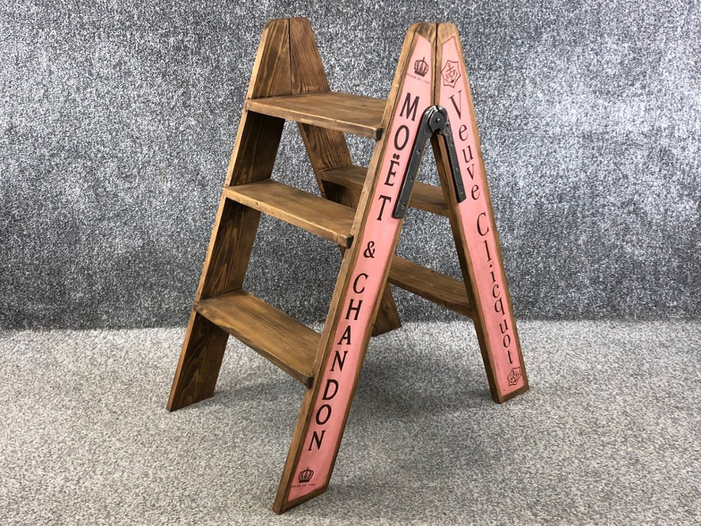 Handcrafted from high-quality wood, this stepladder features a charming champagne design motif that evokes the elegance and celebration of special occasions. The wooden construction ensures durability and longevity, while the attention to detail in the craftsmanship adds character and charm to the piece.