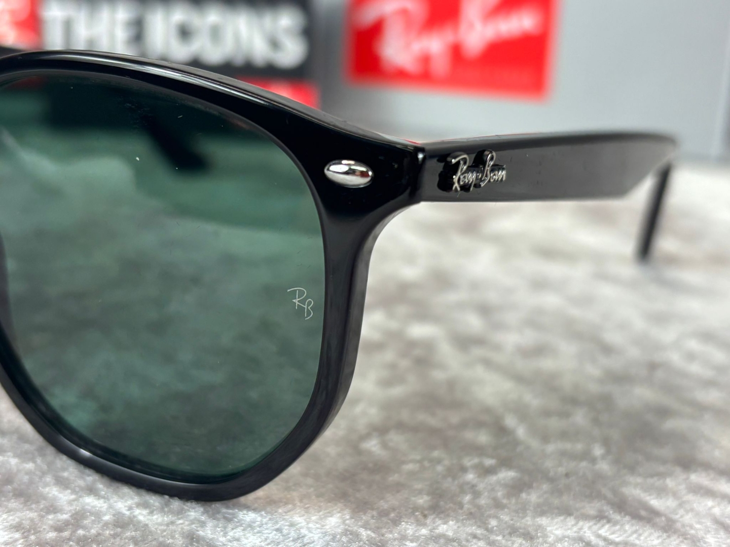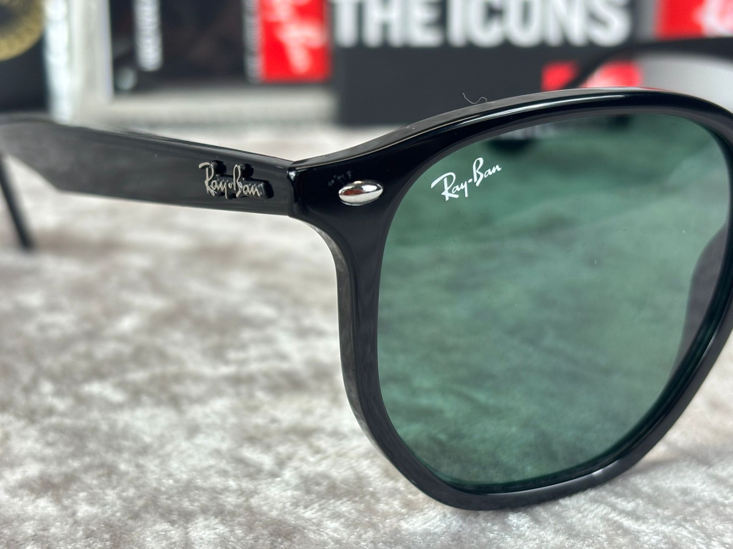 Fitted with classic green lenses, they provide excellent visual clarity and natural vision while reducing glare, making them perfect for bright conditions. The Ray-Ban logo is discreetly displayed on the lens and temple, affirming authenticity and iconic style. The integrated nose design and smooth temple arms further enhance comfort for prolonged use.