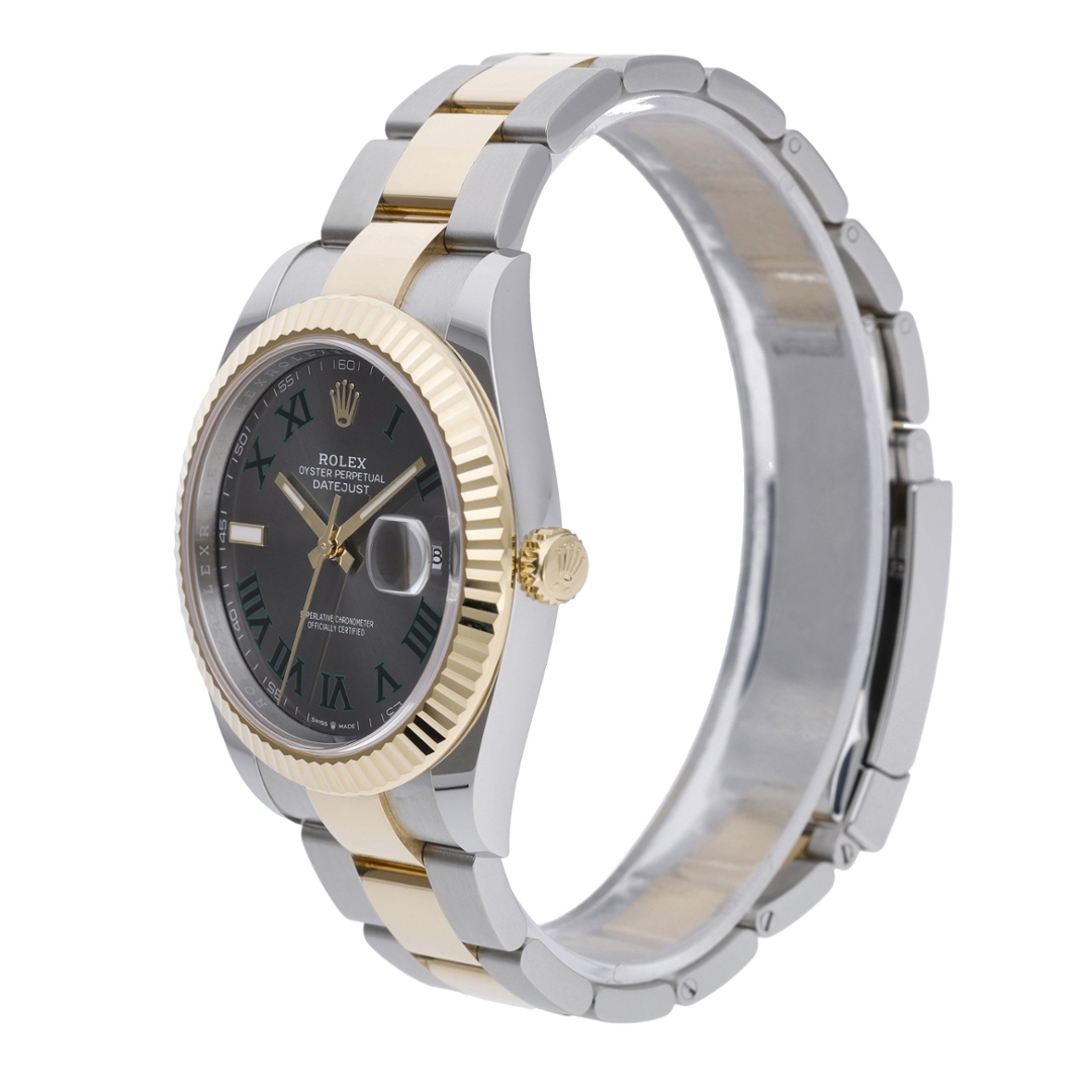 A Bi-Metal Rolex Datejust 41 Watch, Stainless Steel and 18ct Yellow Gold with a Yellow Gold Fluted Bezel and a Slate Dial.
