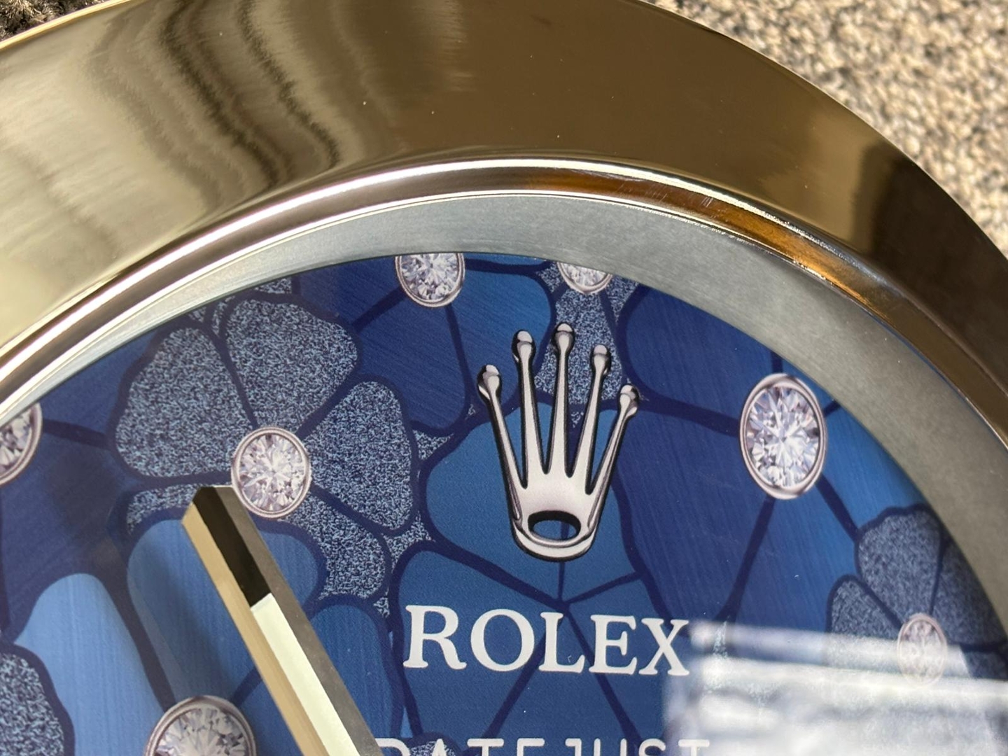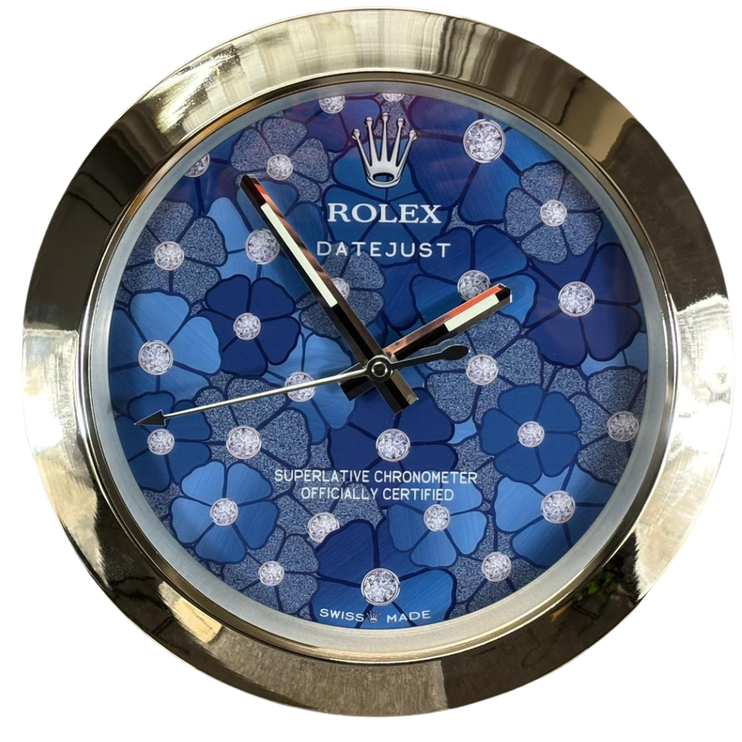 - > Rolex Datejust Azzuro Blue Floral Wall Clock