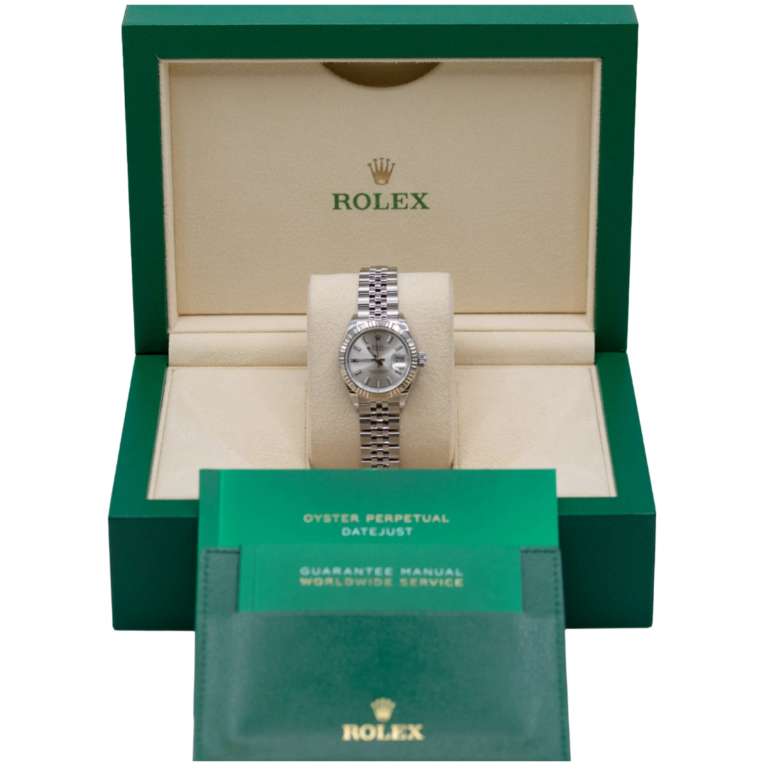 This example is offered in immaculate condition and includes its original Rolex box and full paperwork set from new. Supplied with a 12-month WLC warranty, it offers both reassurance and collectability. As demand for modern 28mm Rolex models continues to grow, the 279174 in this classic white-dial configuration stands out as a highly wearable, enduringly popular choice.