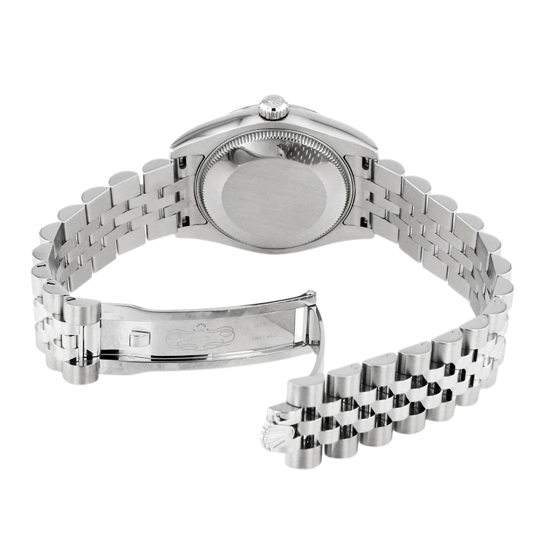 The 31mm Oyster case is fitted to a Jubilee bracelet and houses the Rolex calibre 2235 automatic movement. This movement is Superlative Chronometer certified, offering excellent timekeeping performance and long-term reliability. The sapphire crystal with Cyclops lens provides clear date visibility, while the Oyster case ensures water resistance to 100 metres for everyday practicality.