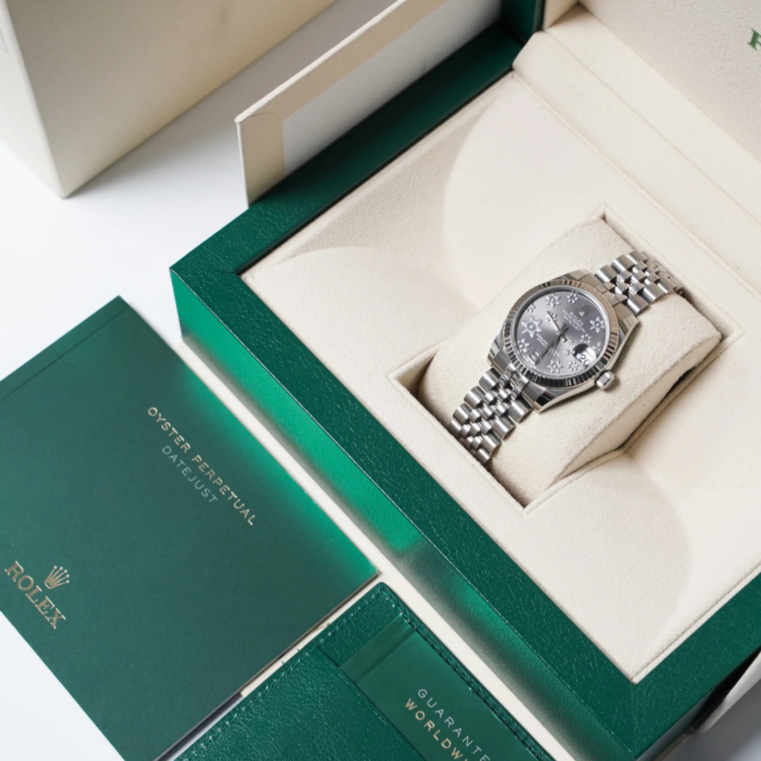 Dated 2019, this watch is supplied with original Rolex paperwork, presentation box, and a 12-month WLC warranty. The floral dial Datejust models have become increasingly desirable, making this an elegant and collectable example with strong ongoing appeal.