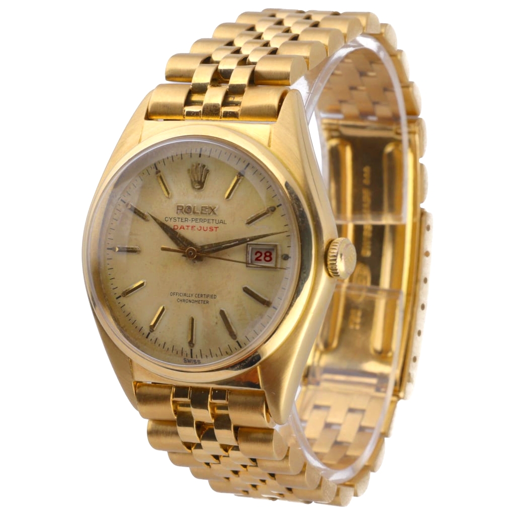 A Rolex Datejust in full 18ct yellow gold, representing a rare early example from the first generation of Datejust production. The case is paired with a matching yellow-gold Jubilee bracelet, offering both intrinsic value and historical significance in the evolution of one of Rolex’s most important models.