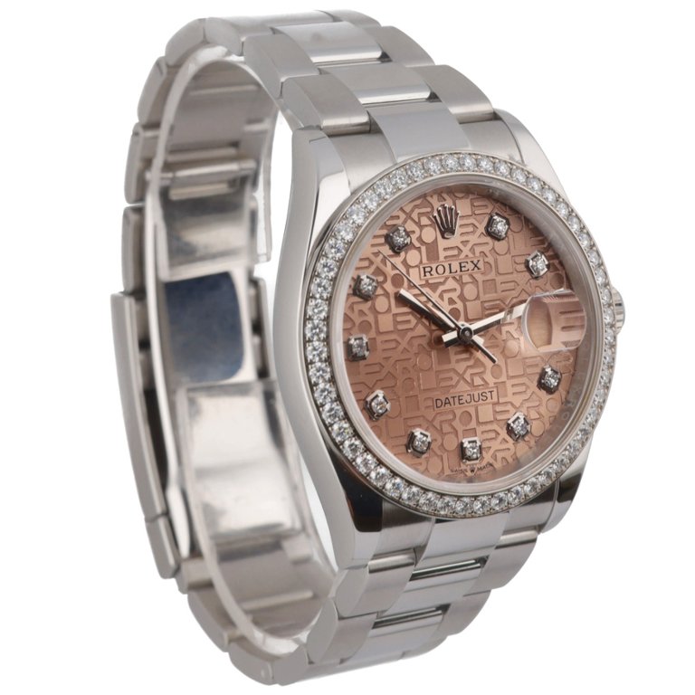 Powered by the Rolex calibre 3235 automatic movement, this model offers outstanding precision, a 70-hour power reserve, and Rolex’s latest advancements in performance and durability. The 36mm Oyster case provides a perfect balance of presence and wearability, while the Jubilee bracelet enhances both comfort and the refined aesthetic expected from a diamond-set Datejust of this calibre.