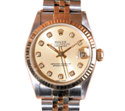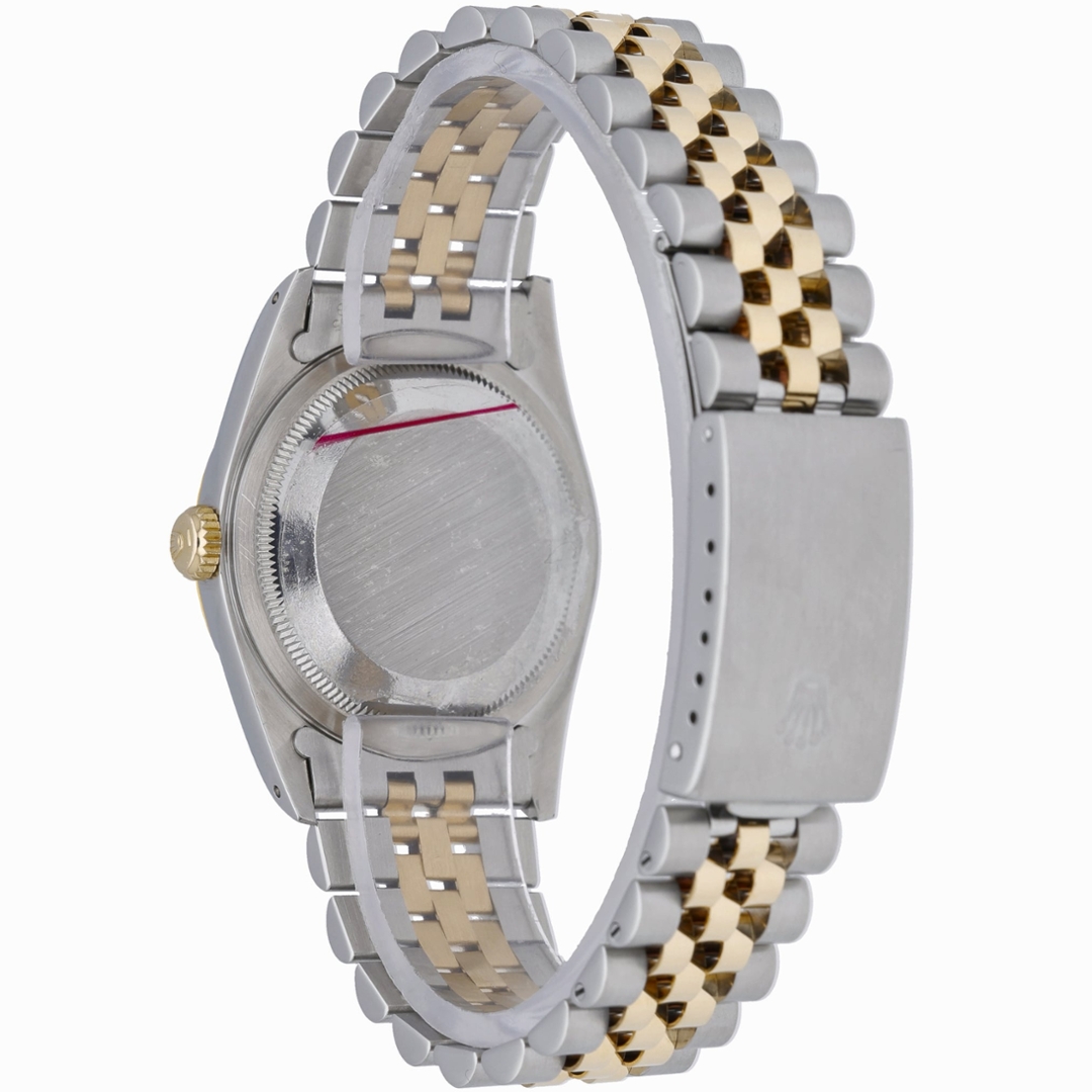 A Rolex Datejust 16233 in its most recognisable and enduring configuration, combining stainless steel and 18ct yellow gold with the signature fluted bezel and classic champagne dial. The 36mm case delivers a balanced and versatile wrist presence, while the warm tones of the dial and gold accents create a refined, unmistakably Rolex aesthetic that has remained in demand for decades.