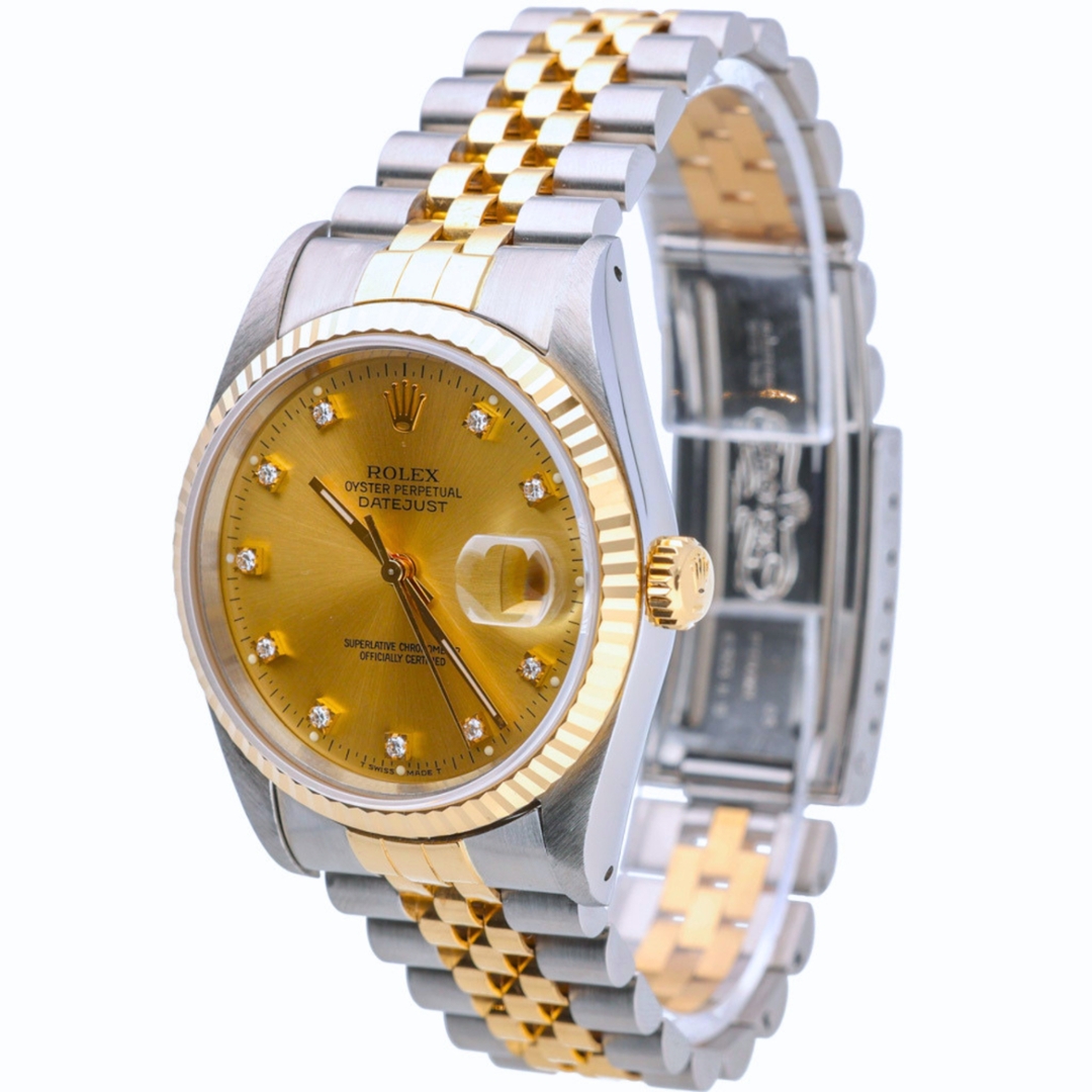 A Rolex Datejust Watch, Stainless Steel & 18ct Yellow Gold on a Champagne Dial with Original Rolex Diamond Numerals