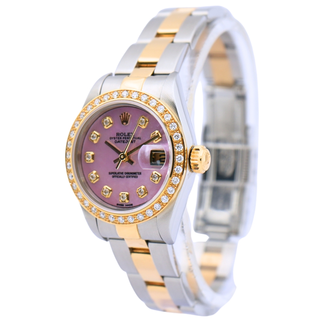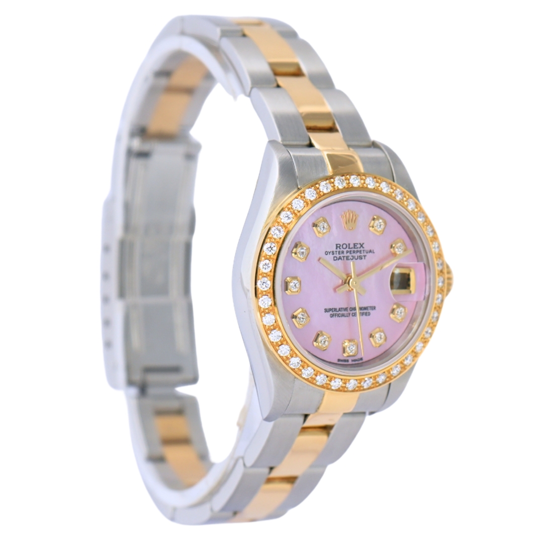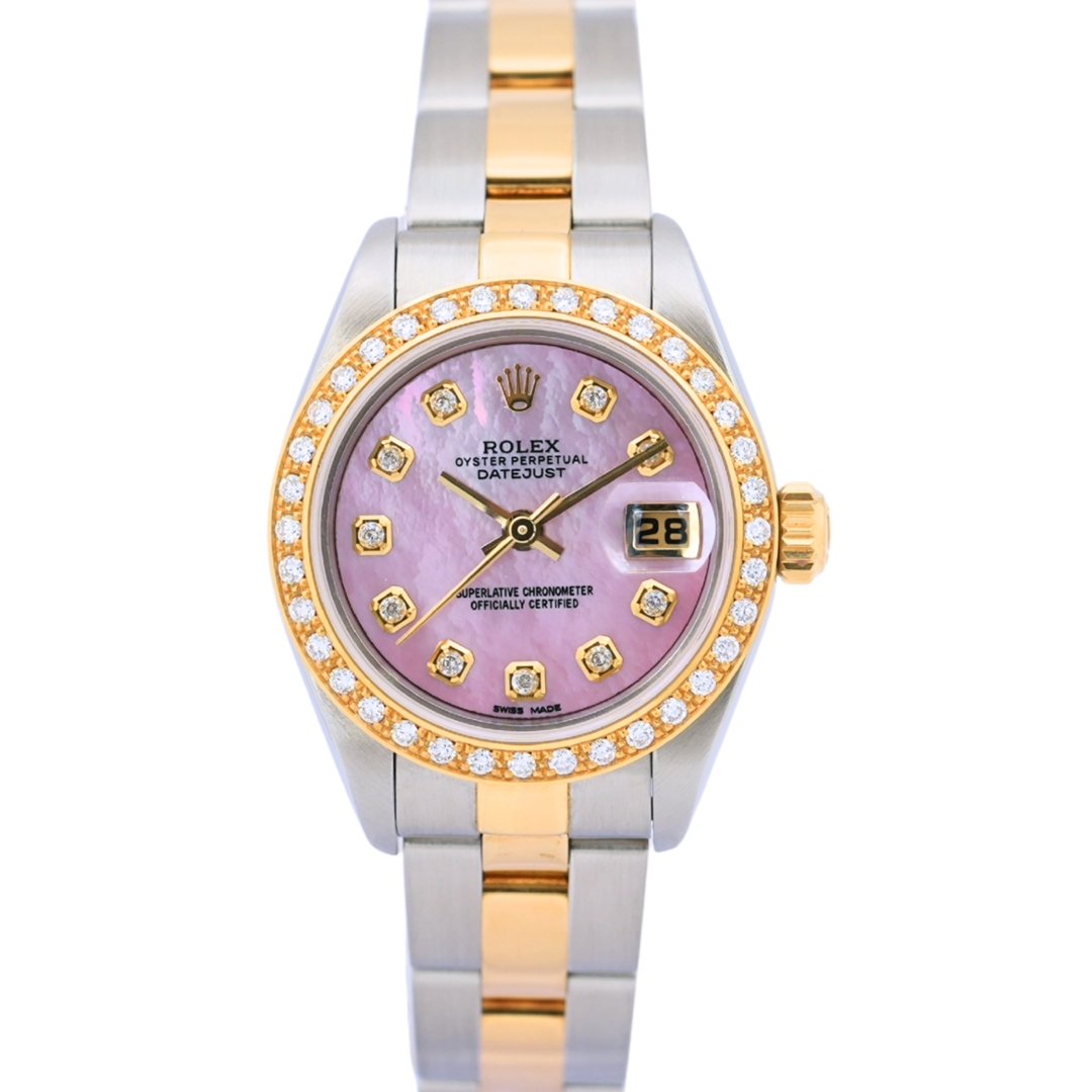 A Bi-Metal Rolex Datejust Watch, Stainless Steel & 18ct Yellow Gold with an Afterset Diamond Bezel on an Afterset Pink Mother-of-Pearl Dial with Diamond Numerals (Accompanied by the Original Bezel & Dial)
