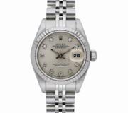 A Rolex Datejust Watch, Stainless Steel with an 18ct White Gold Fluted Bezel on a Purple Dial with an Original Rolex Diamond Numeral VI