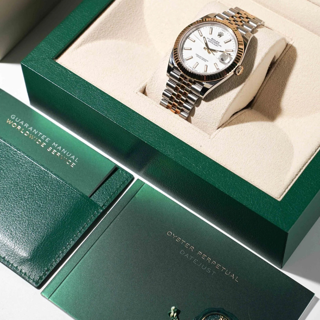 Dated 2021 and presented in immaculate condition, this example is supplied with original box and paperwork and benefits from a 12-month WLC warranty. A highly sought-after Datejust configuration, combining classic styling, Rolex prestige, and strong ongoing demand in the secondary market.