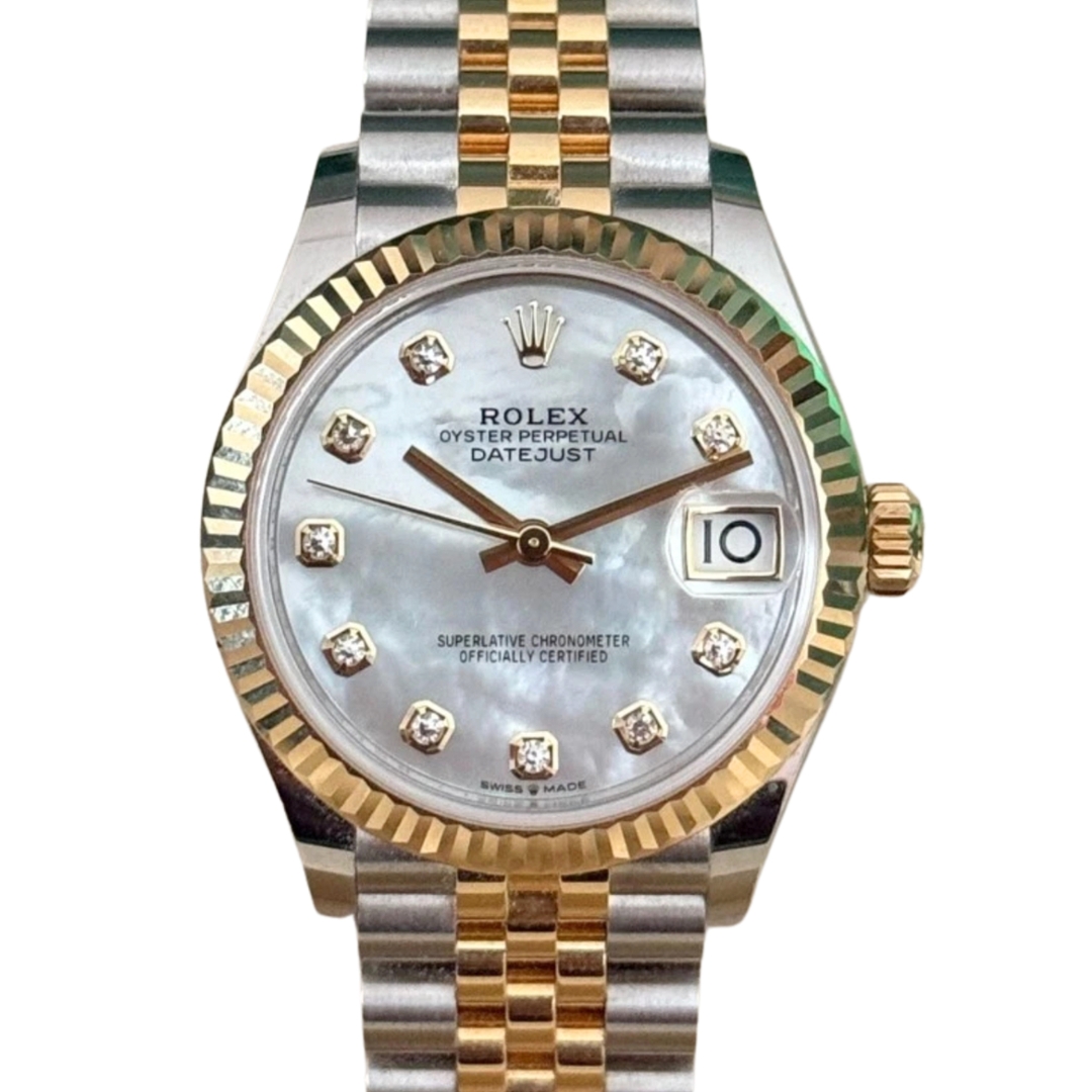 A Bi-Metal Rolex Datejust Watch that exudes contemporary elegance and refined sophistication, this 2026 model 278271 is a stunning expression of Rolex’s iconic design in a perfectly proportioned 31mm case. Crafted from stainless steel and luxurious 18ct Everose gold, it features a beautifully fluted rose-gold bezel and matching Jubilee bracelet links, offering a warm, modern take on the classic bimetal aesthetic.