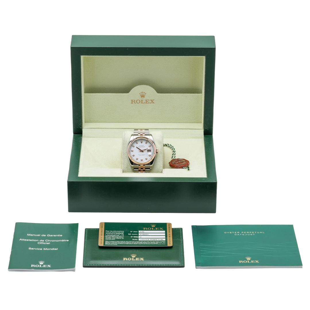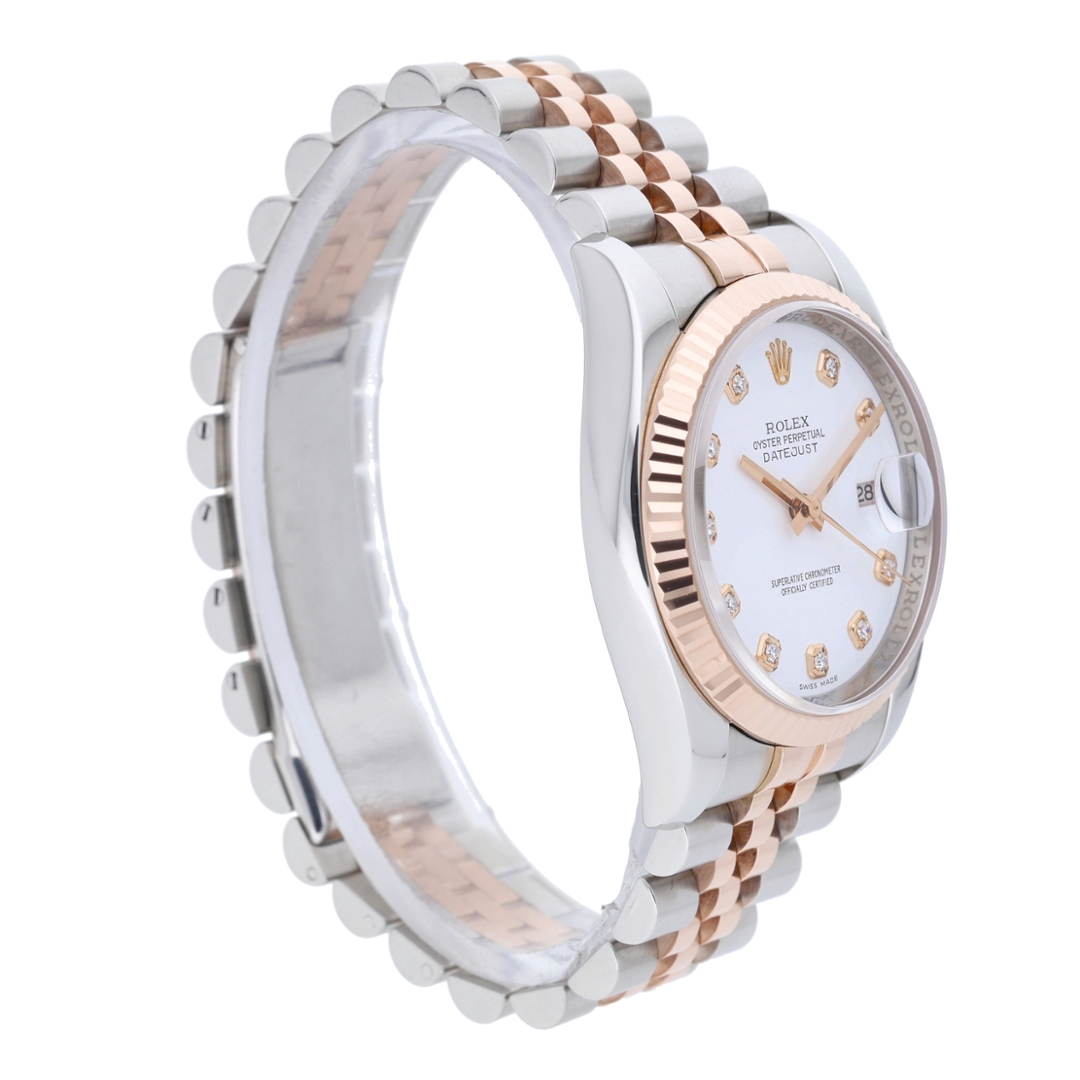 A Bi-Metal Rolex Datejust Watch, Stainless Steel & 18ct Rose Gold on a White Dial with Original Rolex Diamond Numerals
