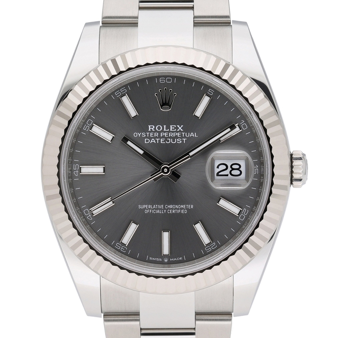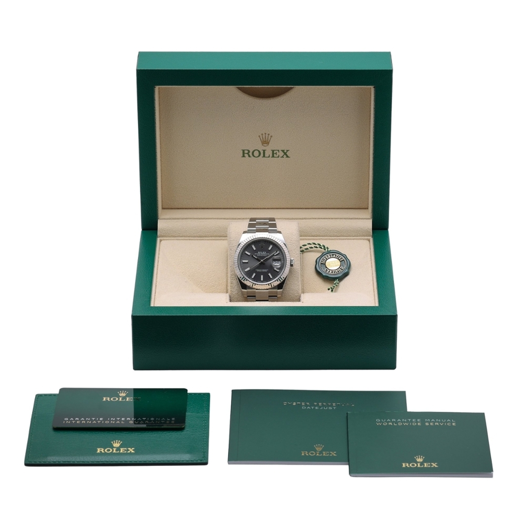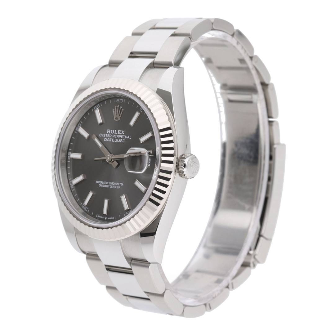 A Rolex Datejust 41 Watch, Stainless Steel with an 18ct White Gold Bezel on a Slate Dial