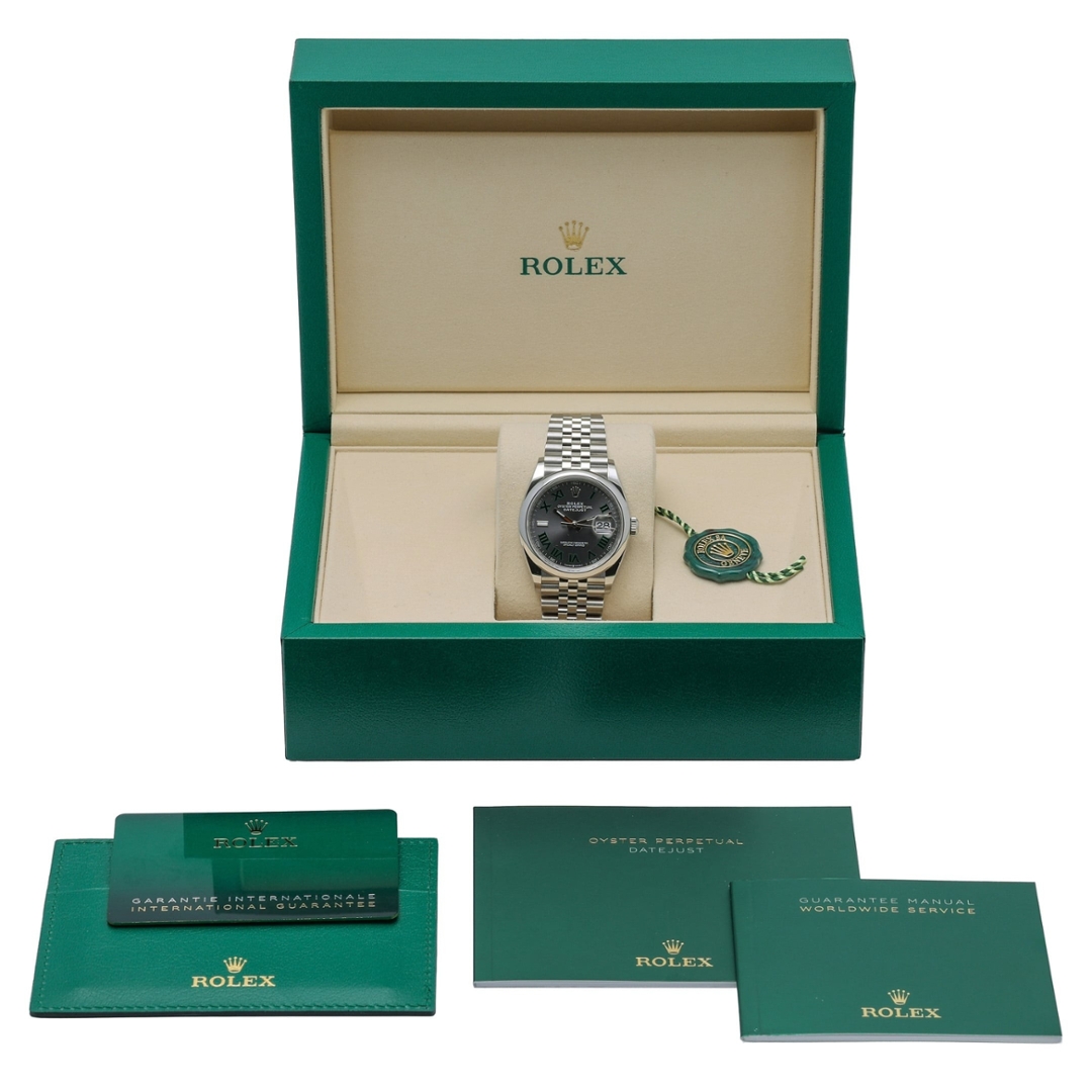 Presented in immaculate condition, this 2026 model has the complete original paperwork confirming its authenticity and is covered by the Rolex manufacturer's warranty until 2031. Boxed and certified, the watch represents a sound investment and a stylish, everyday companion for its next owner. The stainless steel Datejust with a slate dial remains one of the most versatile and popular Rolex models, ideal for those who appreciate elegance combined with performance.