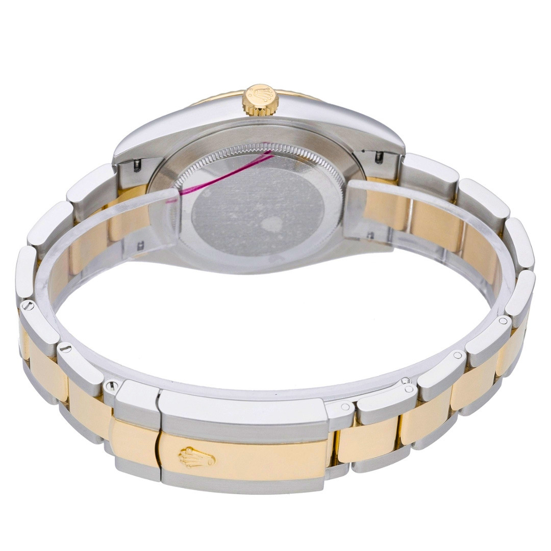The 41mm case offers a confident wrist presence, complemented by the classic Oyster bracelet, which combines brushed steel with rich yellow-gold centre links. The black dial provides a sharp contrast to the diamond-set numerals, delivering both legibility and refinement. Powered by the Rolex Calibre 3235 automatic movement, this model benefits from exceptional accuracy, a 70-hour power reserve, and the reliability of a Superlative Chronometer.
