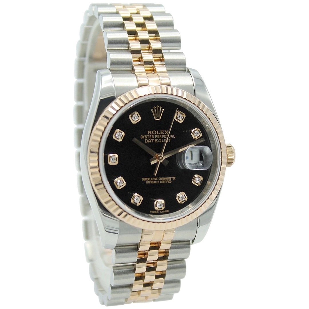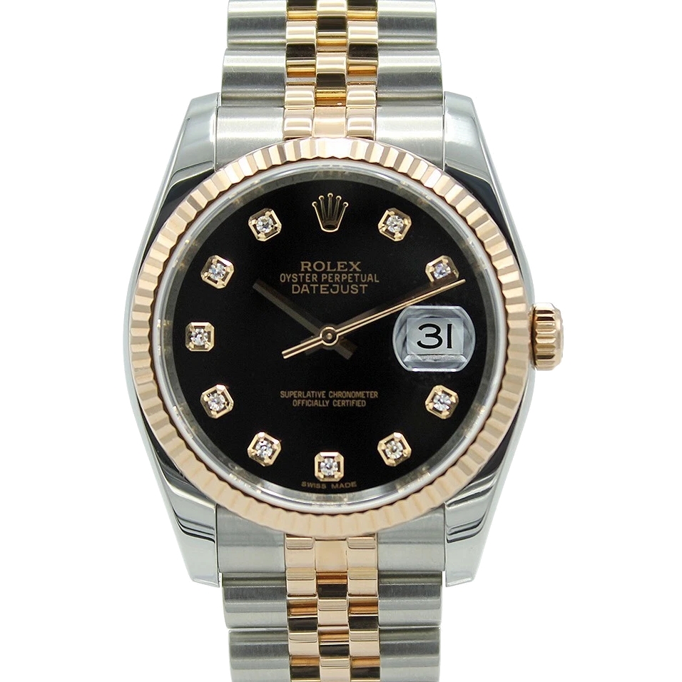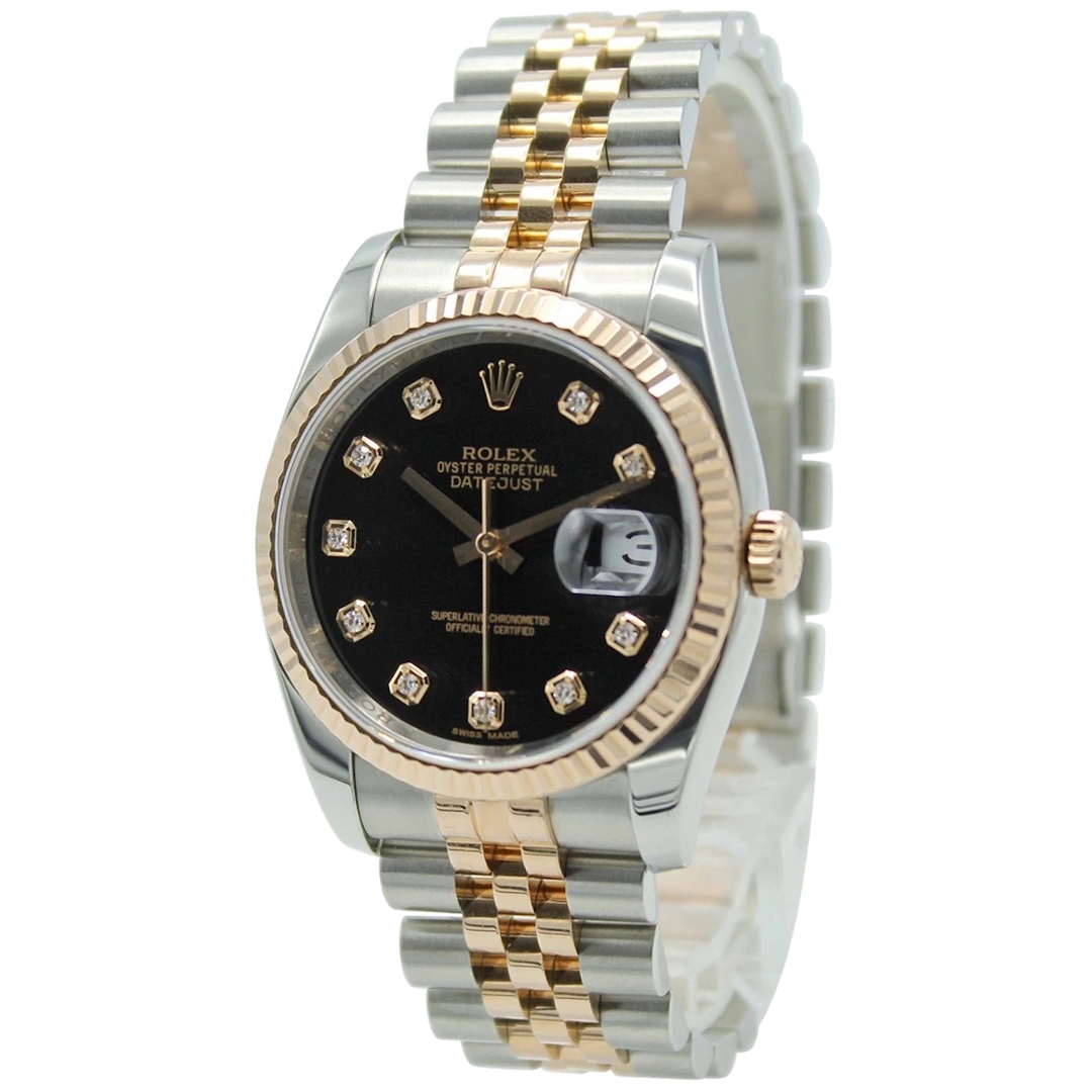 A Bi-Metal Rolex Datejust Watch, Stainless Steel and 18ct Yellow Gold with a Yellow Gold Fluted Bezel and a Black Dial with Original Rolex Diamond Numerals