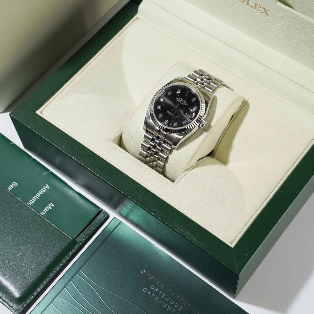 Presented in immaculate condition and offered as a full set with original Rolex paperwork, box, and certification, this 2011 example remains highly desirable. Combining timeless design with precious detailing and consistent market demand, the 116234 remains a dependable and versatile choice within the Rolex range.