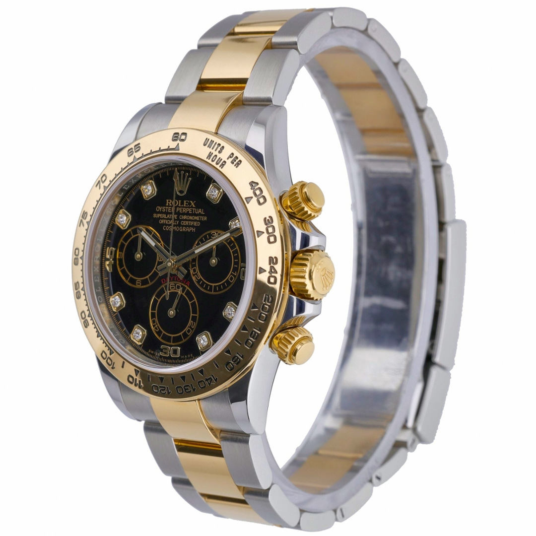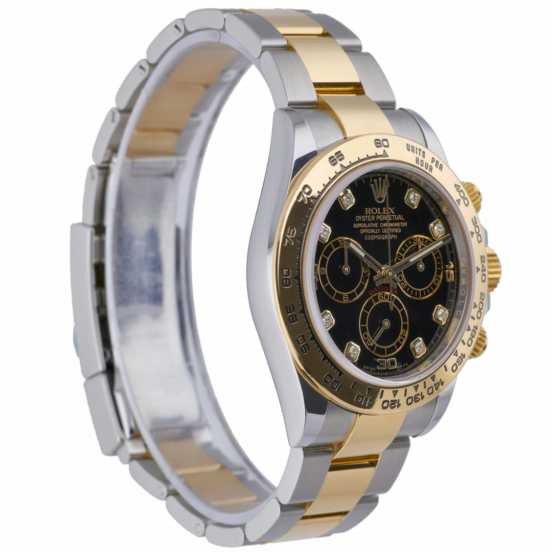 A Bi-Metal Rolex Daytona Watch, Stainless Steel and 18ct Yellow Gold with a Black Original Diamond Dial.