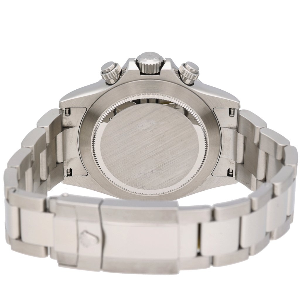 At the heart of the Daytona is the Rolex Calibre 4130 automatic movement, a COSC-certified chronometer known for its accuracy, reliability, and 72-hour power reserve. The movement incorporates a vertical clutch and column-wheel chronograph system, ensuring smooth operation of the chronograph. The Oyster case offers 100-meter water resistance, while the screw-down pushers and sapphire crystal provide additional protection and durability.