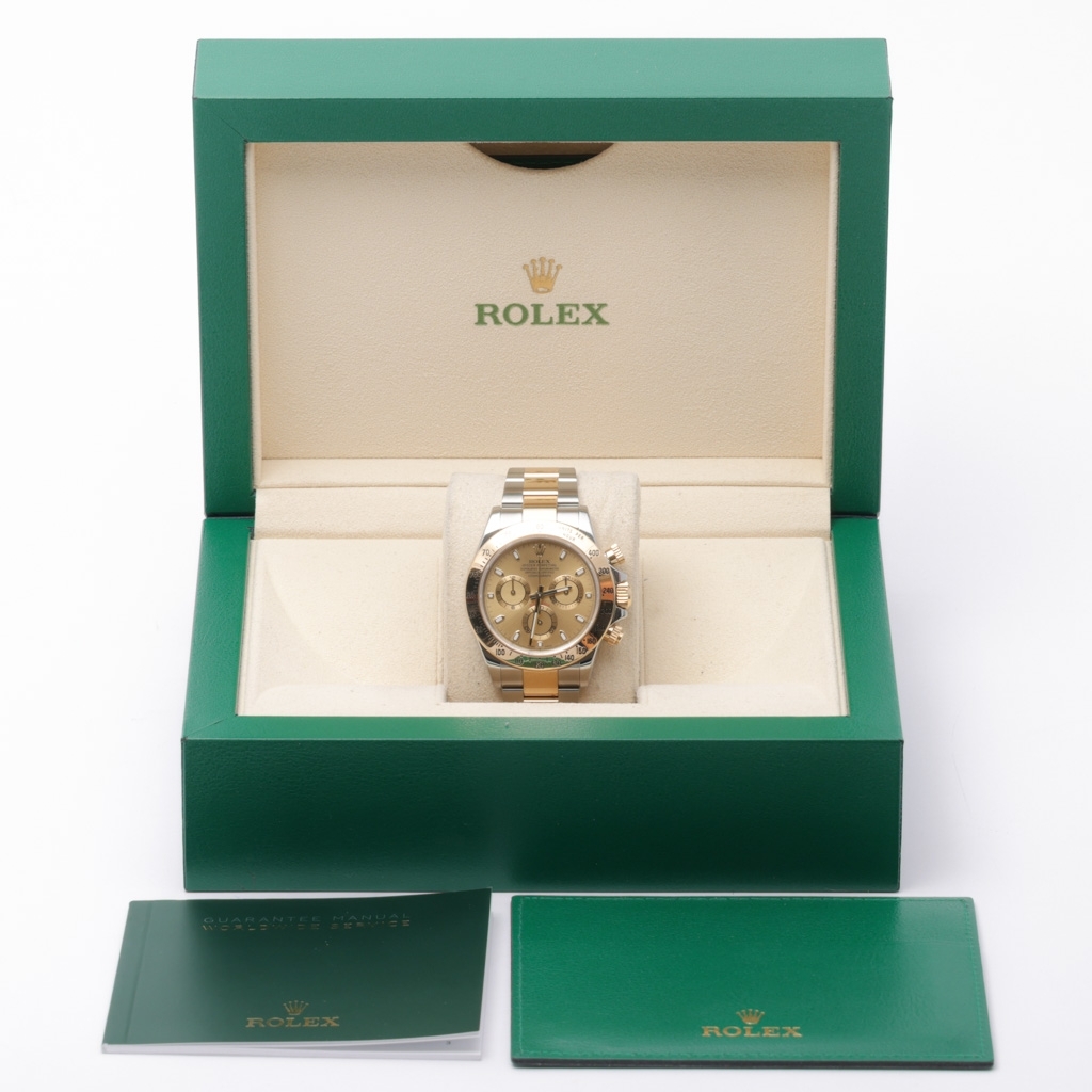 With its enduring two-tone design and strong mechanical pedigree, the 116503 remains one of the most recognisable variants of the Daytona line. It's a complete set in excellent condition, with dual warranty support, making it a compelling opportunity for collectors and enthusiasts seeking a timeless, investment-worthy chronograph.