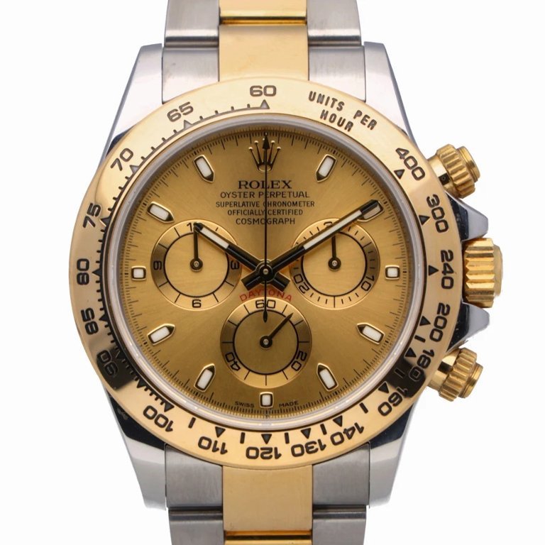 A Bi-Metal Rolex Daytona Watch, Stainless Steel and 18ct Yellow Gold with a Champagne Dial.