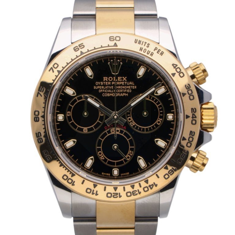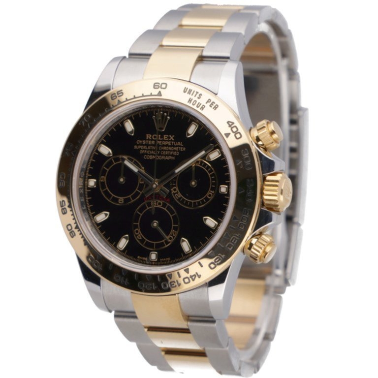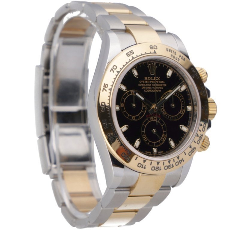 A Bi-Metal Rolex Daytona Watch, Stainless Steel & 18ct Yellow Gold on a Black Dial