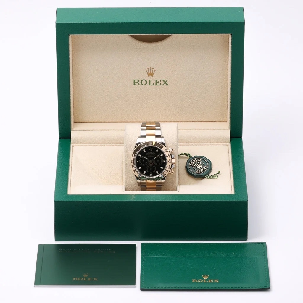 Presented in Immaculate condition, this 2022 example is offered as a complete full set with its original Rolex box and paperwork, and is accompanied by the Rolex Manufacturer Warranty until 2027 and a 12-month WLC warranty. The Daytona 116503 remains a highly desirable two-tone model within the Rolex sports range, combining precious-metal detailing with one of the most recognisable chronograph designs in modern watchmaking.