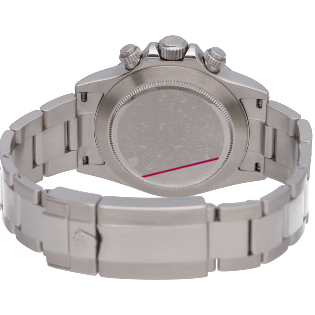 Powered by the in-house Rolex Calibre 4130 automatic movement, the 116520 is celebrated for its durability, precision, and reduced component design, making it one of the most reliable chronograph movements in modern watchmaking. The 40mm case offers balanced proportions on the wrist, while the clean steel bezel maintains the understated, versatile aesthetic collectors continue to favour.