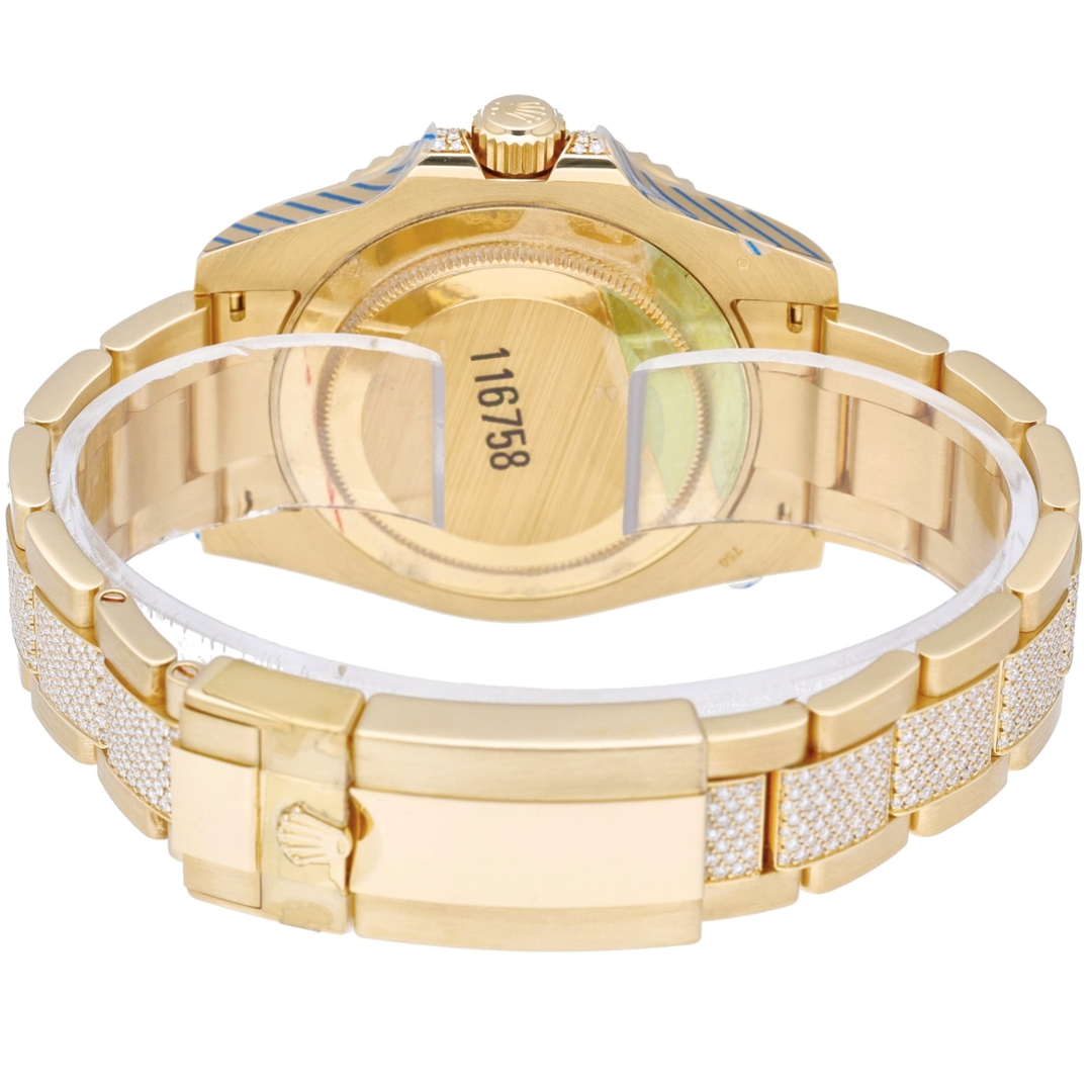 A Rolex GMT-Master II Watch, Full 18ct Yellow Gold & Diamond Bracelet and Case, with a Factory Original Rolex Diamond, Sapphire & Ruby Bezel on a Black Dial