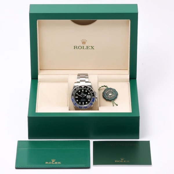 A Rolex GMT-Master II Model 126710BLNR is a modern marvel in horology, embodying the perfect blend of style and function. Released in 2023, this stunning watch features a robust stainless steel case known for its exceptional durability and classic design. The standout feature of this timepiece is its striking black-and-blue bezel, often referred to as the "Batman" bezel, which not only adds contemporary flair but also serves a practical purpose by distinguishing day from night.
