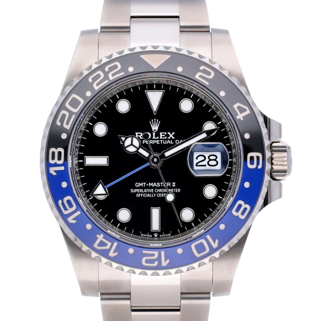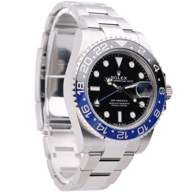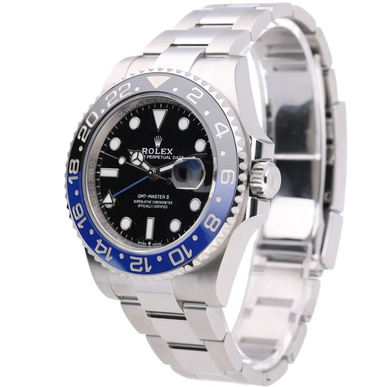 A Rolex GMT-Master II 126710BLNR, released in 2023, is a quintessential blend of precision, style, and versatility. The 40mm stainless steel case pairs with the striking black-and-blue "Batman" bezel, which gives this iconic watch its popular nickname. The black dial is accentuated with luminous hour markers and hands, ensuring excellent legibility in any lighting condition.