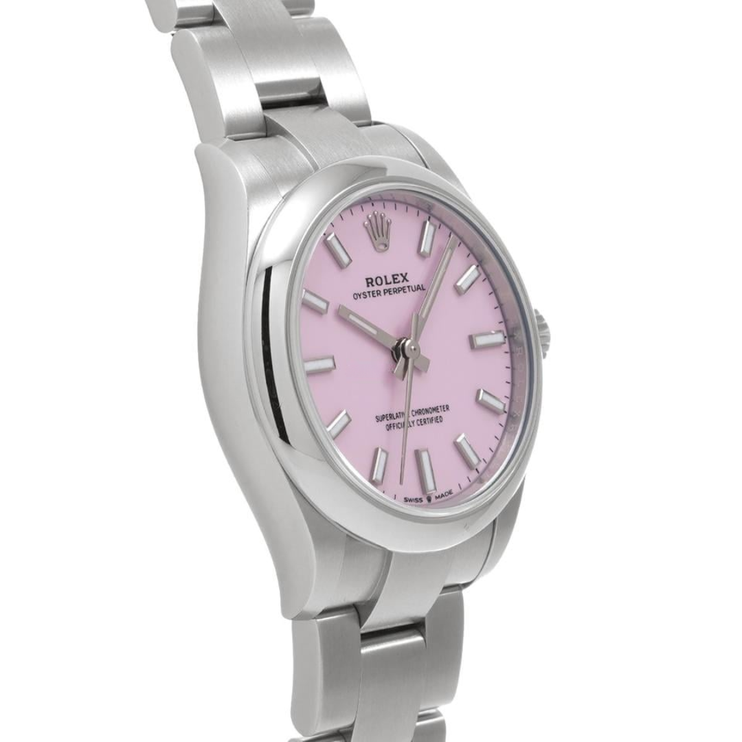 A Rolex Oyster Perpetual Watch, Stainless Steel with a Candy Pink Dial.