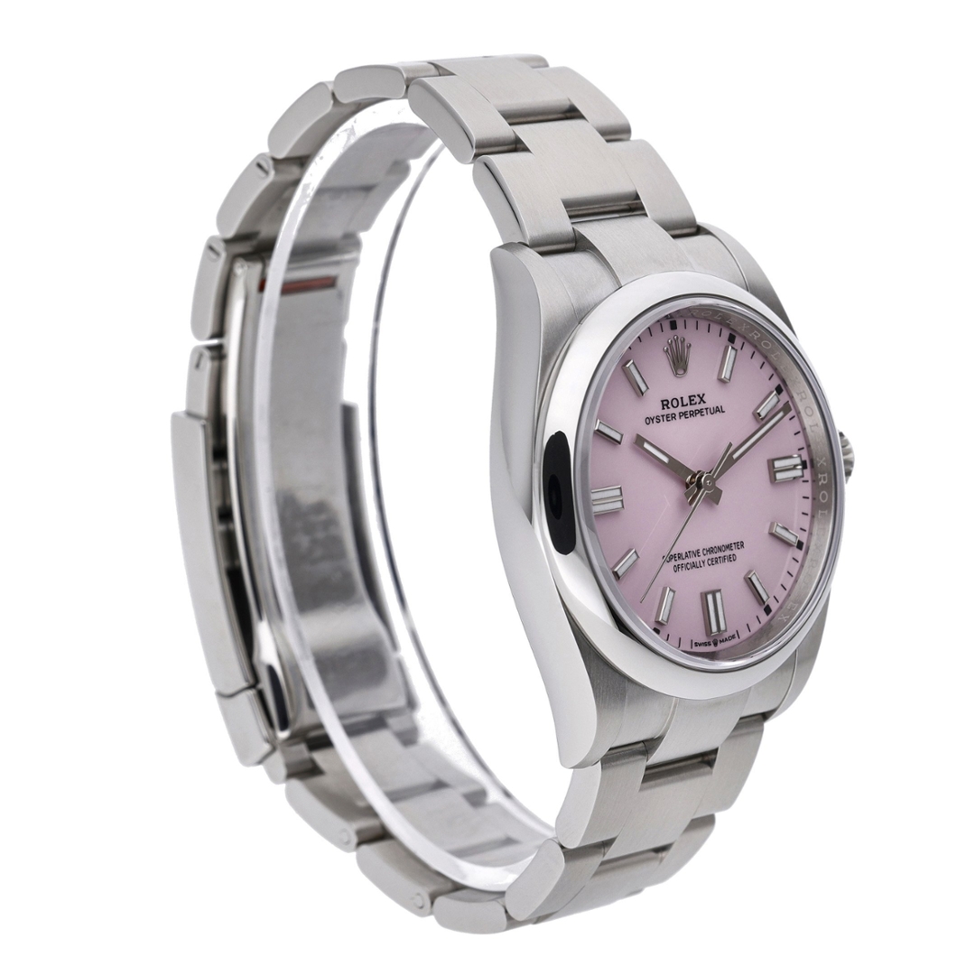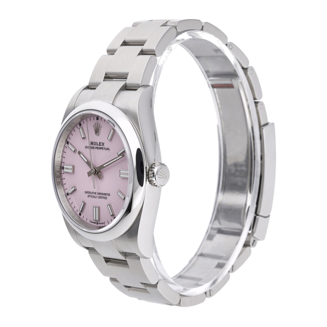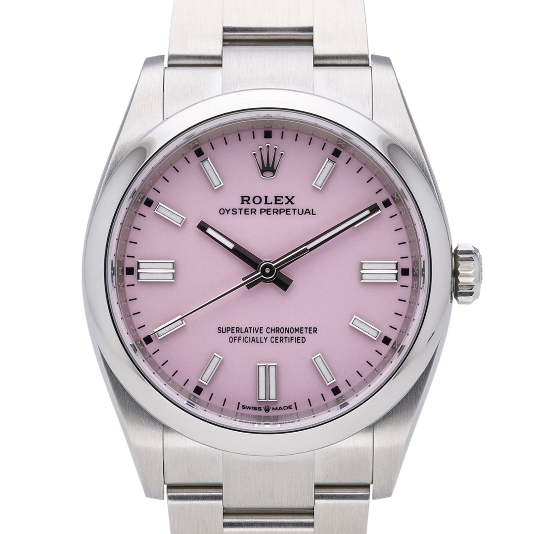 A Rolex Oyster Perpetual Watch, Stainless Steel on a Candy Pink Dial