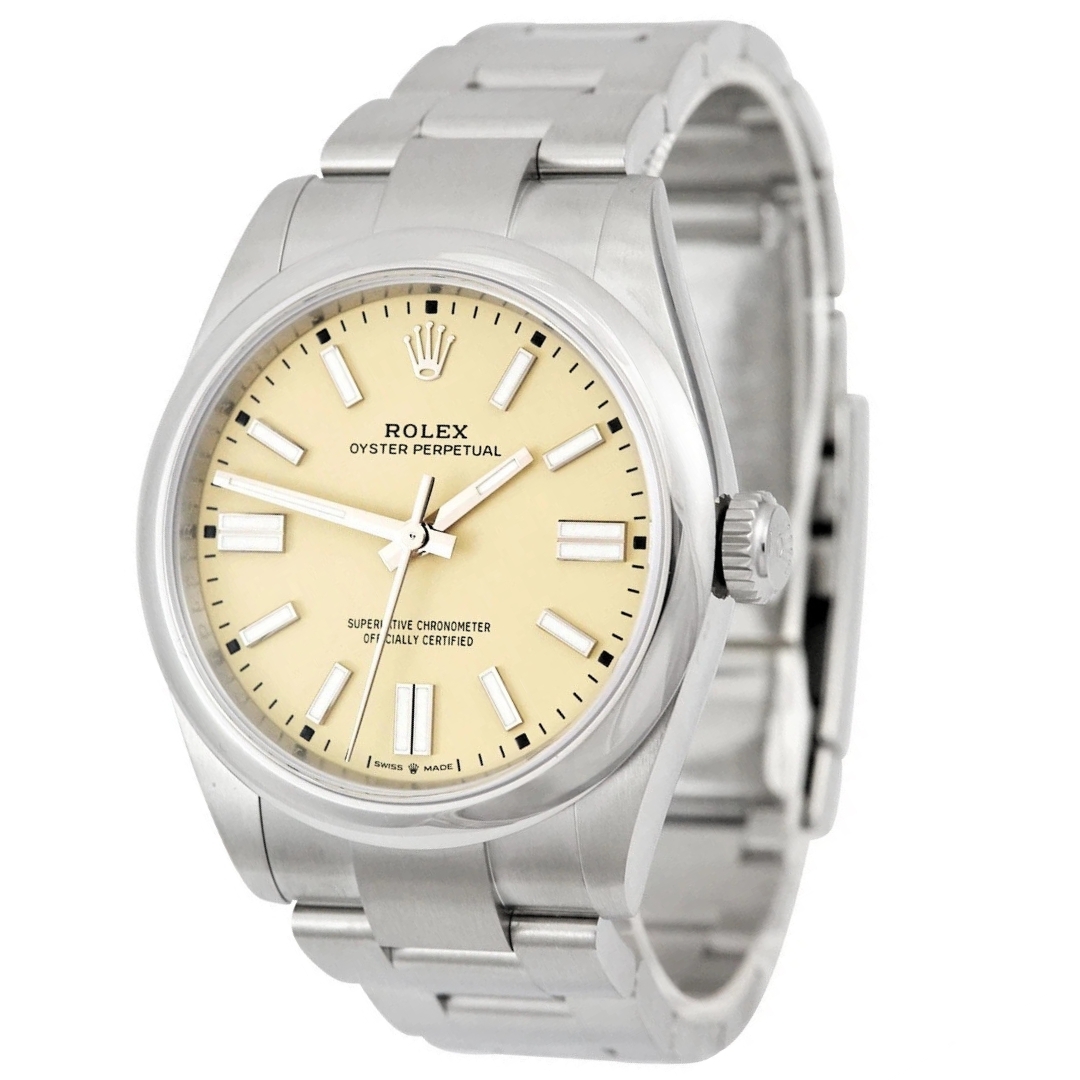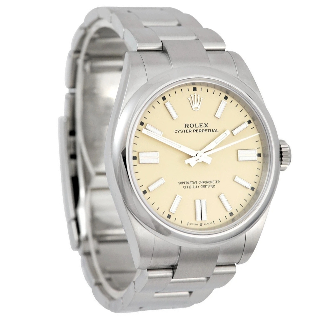 Powered by the Rolex Calibre 3230 automatic movement, this model benefits from cutting-edge precision, anti-magnetic resistance, and an impressive power reserve, reflecting Rolex’s latest advancements in watchmaking. The simplicity of the dial, free from complications, enhances legibility while emphasising the purity of the design. Paired with the robust Oyster bracelet, the watch offers excellent comfort, durability, and a cohesive sport-luxury feel suitable for any setting.