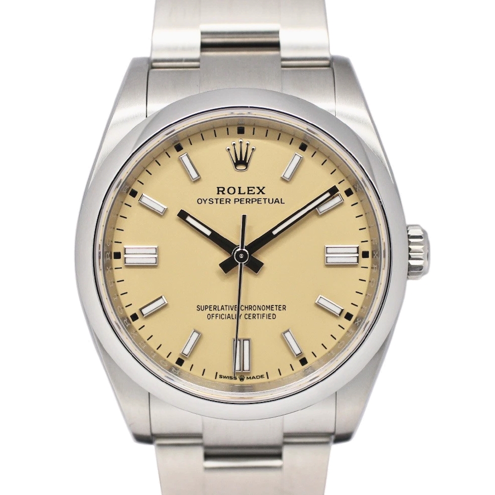 A Rolex Oyster Perpetual 36 Watch, Stainless Steel on a Beige Dial