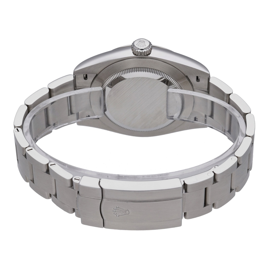 The 41mm case is fitted with a smooth bezel and features a crisp dial layout with luminous baton hour markers and hands, all protected beneath a scratch-resistant sapphire crystal. Inside beats the Rolex Calibre 3230 — an automatic movement developed and manufactured entirely in-house. This self-winding mechanical calibre is equipped with Rolex’s patented Chronergy escapement and offers an impressive 70-hour power reserve, guaranteeing exceptional reliability, accuracy, and shock resistance.