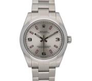 Powered by a reliable Rolex automatic movement, this timepiece delivers the precision and durability the brand is renowned for. The Oyster case construction ensures everyday practicality, while the simple time-only display reflects the purity of the Oyster Perpetual line. The proportions make it an ideal choice for those seeking a smaller, elegant Rolex with genuine presence.