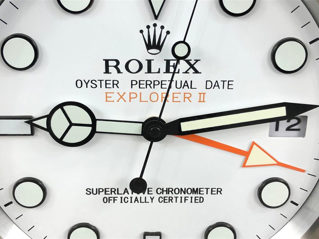A statement piece measuring approximately 14 inches in height and width, this clock is perfectly suited for offices, watch rooms, or contemporary interiors. Clean, functional, and instantly recognisable, it offers a striking centrepiece that reflects the rugged elegance and enduring appeal of the Explorer II design.