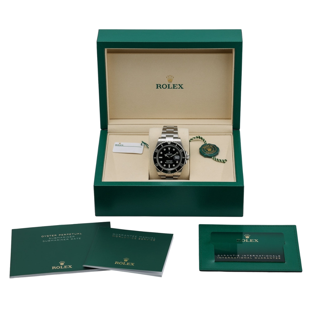 Presented in immaculate condition, this Submariner includes its original complete set of paperwork and the signature Rolex box, ensuring authenticity and prestige. Backed by a Rolex manufacturer's warranty valid until 2030, this timepiece offers unparalleled peace of mind.