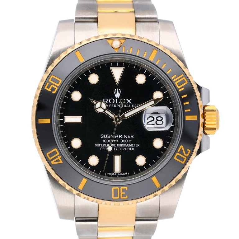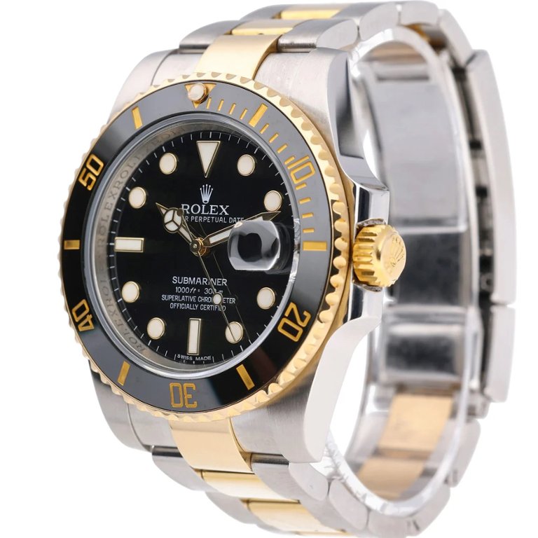 A Rolex Submariner Date 116613LN presented in the classic bimetal combination of stainless steel and 18ct yellow gold, delivering a powerful blend of luxury and professional dive-watch capability. The 40mm Oyster case is paired with the matching Oyster bracelet, featuring polished yellow-gold centre links, creating a distinctive and robust presence on the wrist.