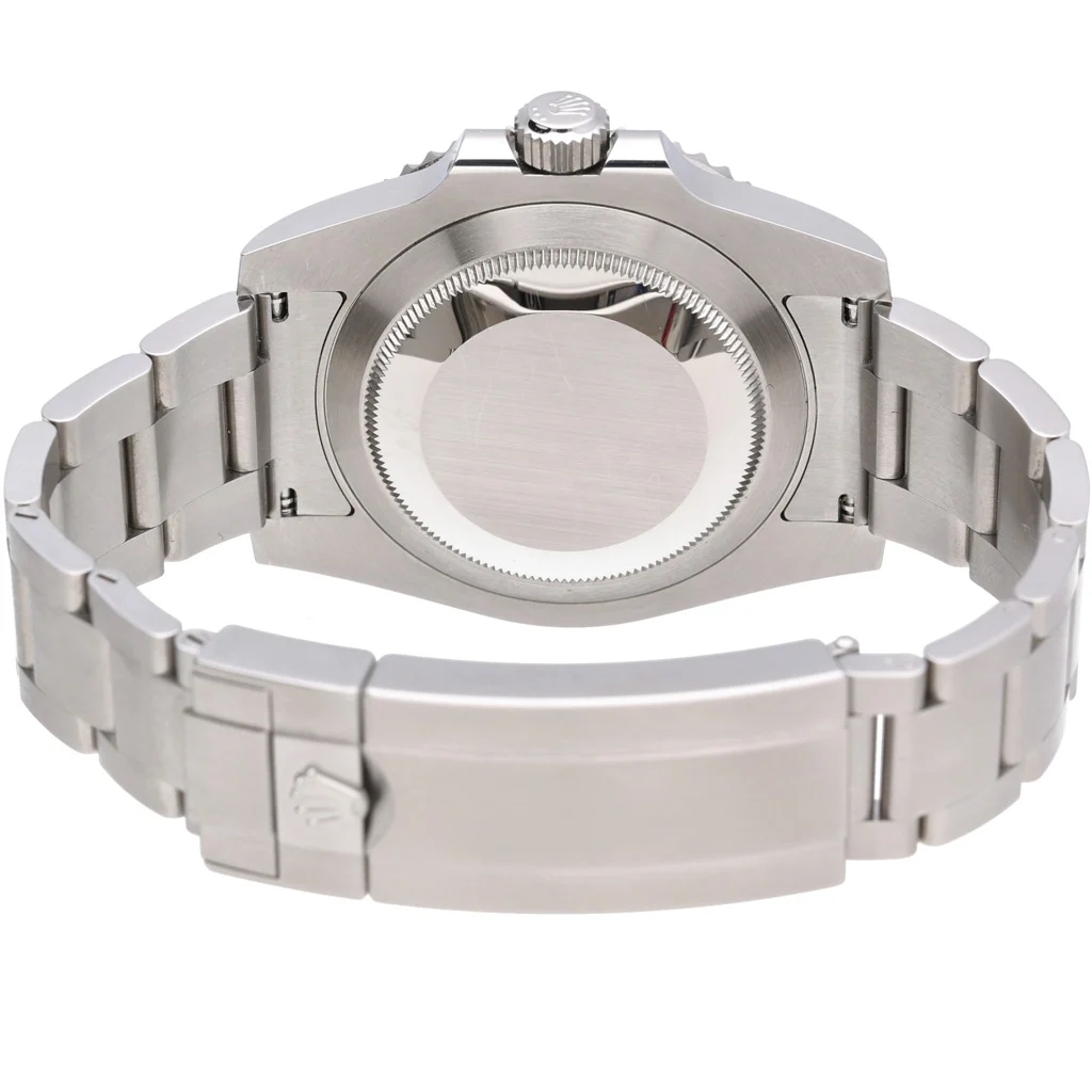 A Rolex Submariner 114060, presented in a 40mm Oystersteel case, represents the purest expression of Rolex’s iconic dive watch. The black dial features luminous hour markers and Mercedes hands, delivering exceptional legibility in all conditions, while the absence of a date preserves a clean, symmetrical aesthetic highly favoured by collectors. The unidirectional black Cerachrom bezel is engineered for precise dive timing, offering durability and scratch resistance in demanding environments.
