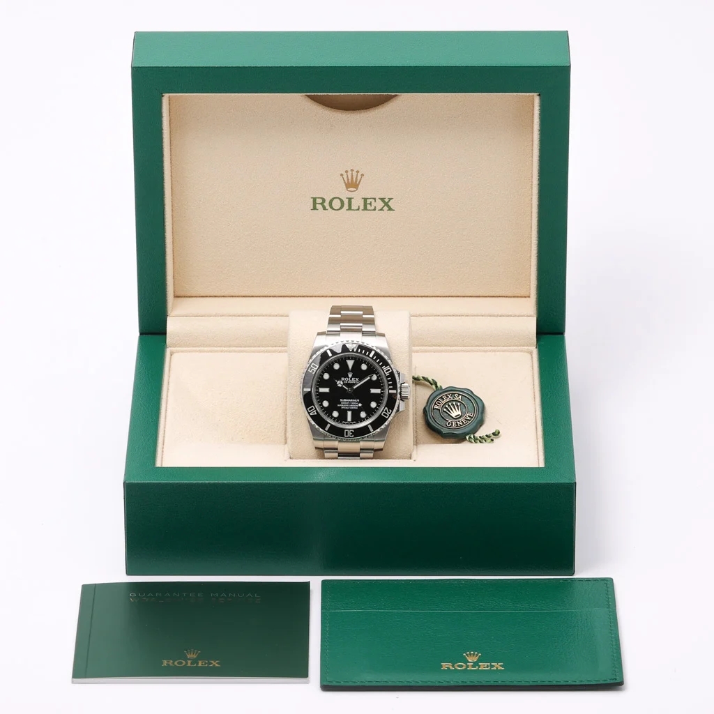 Dated 2018 and presented in immaculate condition, this watch is supplied as a full set with original box and paperwork and is backed by a 12-month WLC warranty. A highly sought-after no-date Submariner, combining timeless design, strong collector appeal, and enduring demand at auction.
