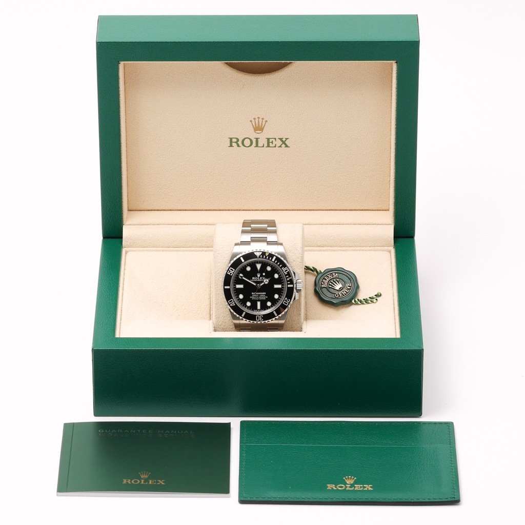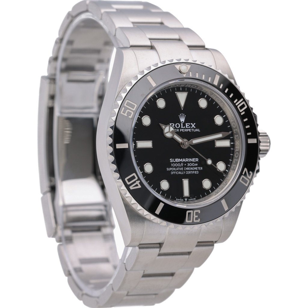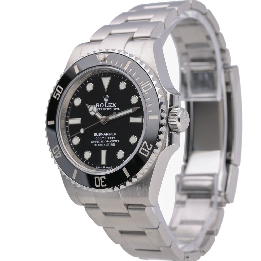 A Rolex Submariner 124060 is a modern classic that combines Rolex's renowned craftsmanship with contemporary updates. Released in 2021, this 41mm stainless steel model features a striking black bezel and dial, offering a timeless design that remains incredibly versatile.