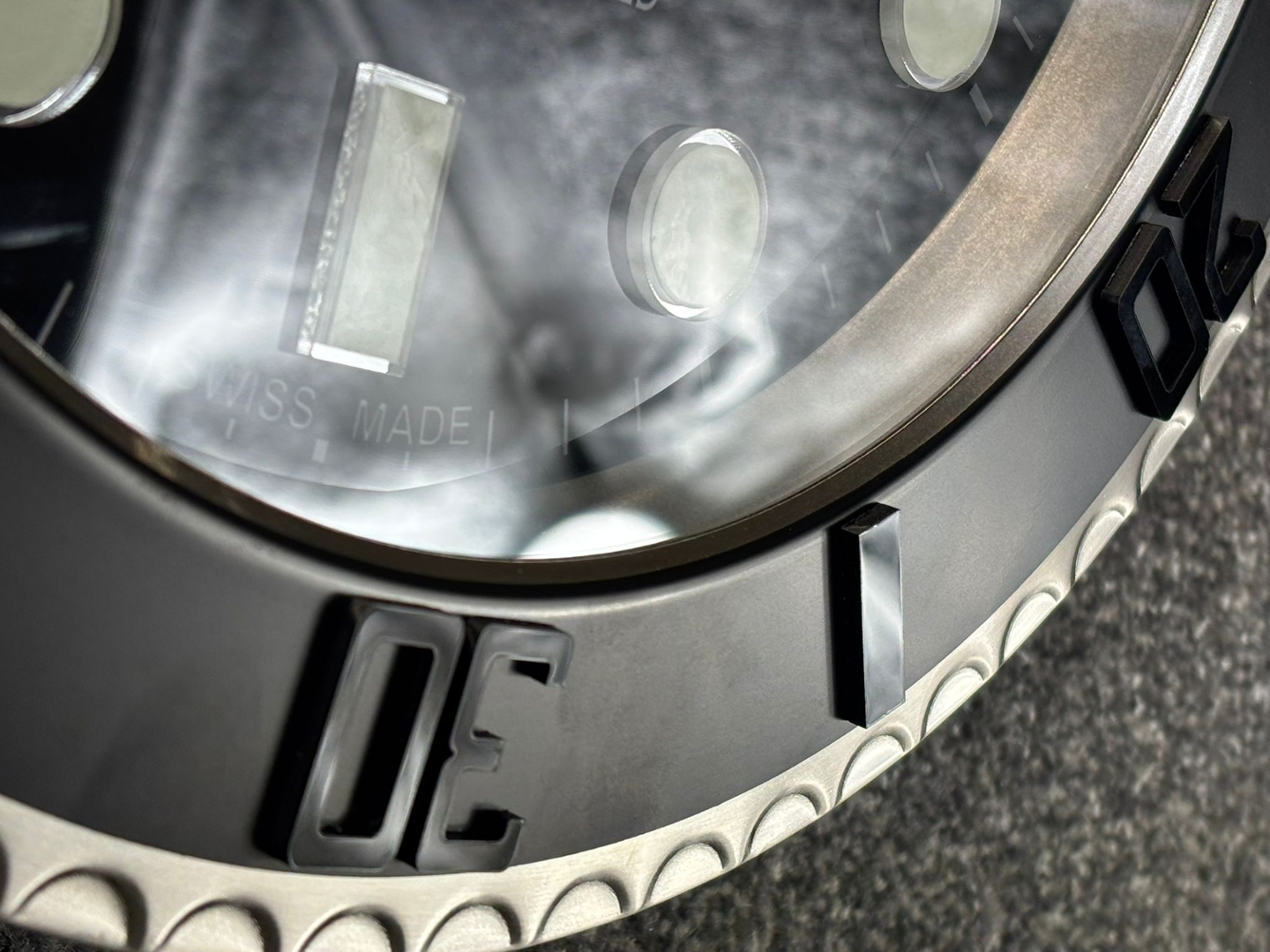 Framed by a robust black bezel with raised numerals and a textured edge, this wall clock is a perfect addition to modern interiors, collector walls, or luxury office settings. With its bold design and high-end presence, this replica brings the timeless appeal and performance-focused elegance of the Yacht-Master into any space with effortless style.