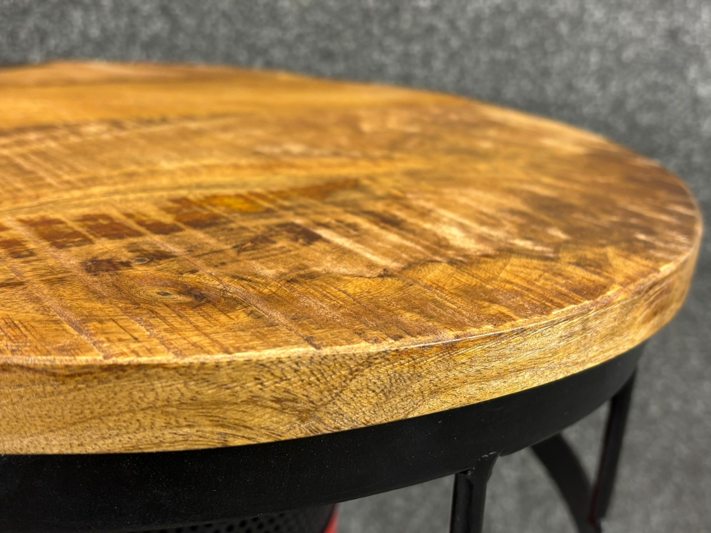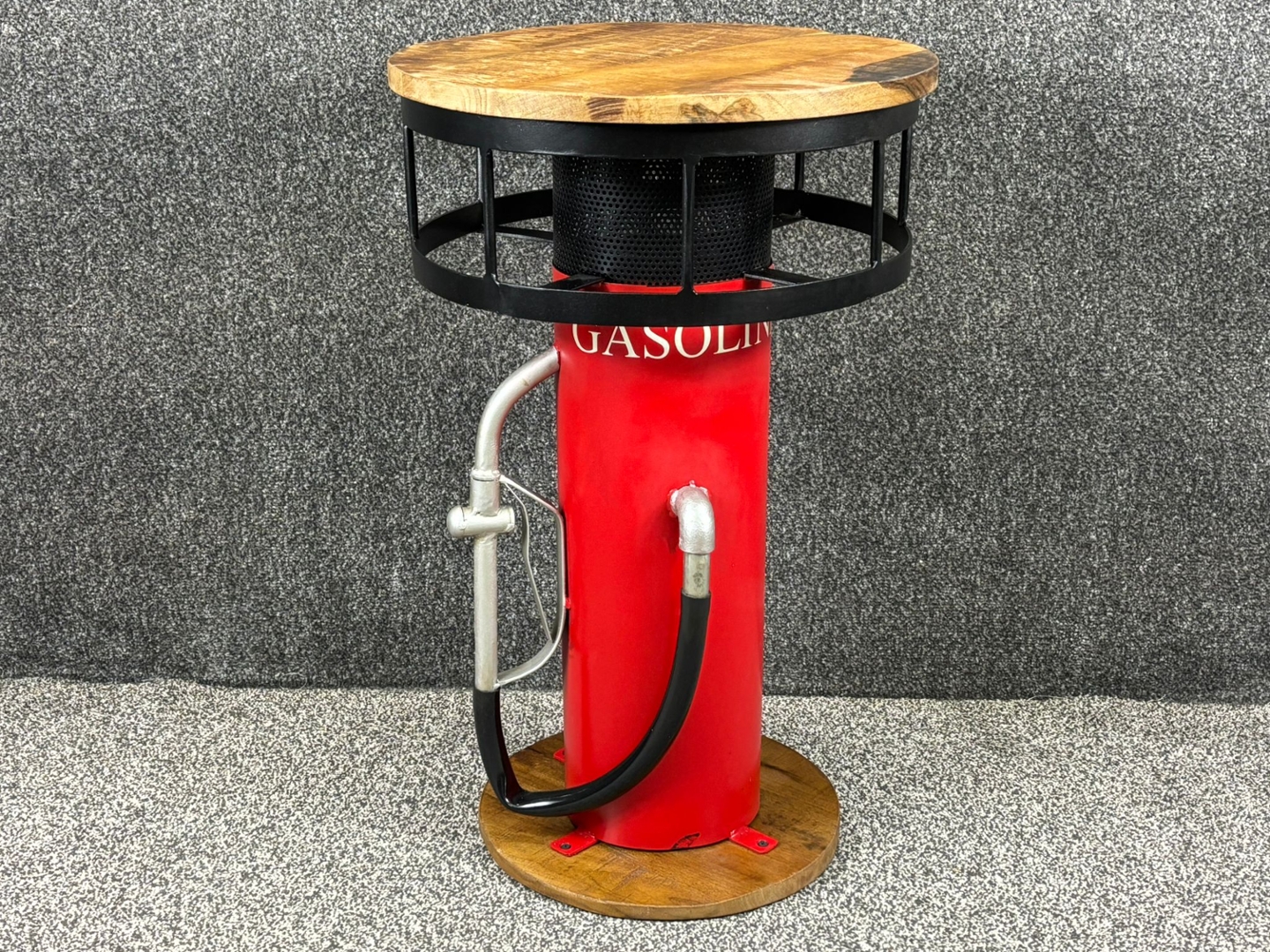 - > Route 66 Fuel Pump Style Side Table with a Wooden Top
