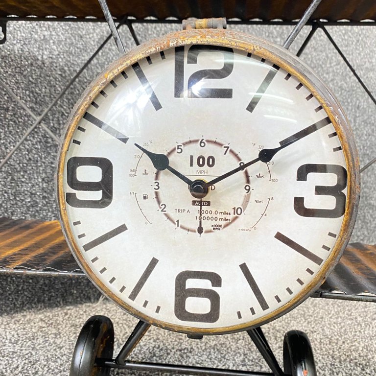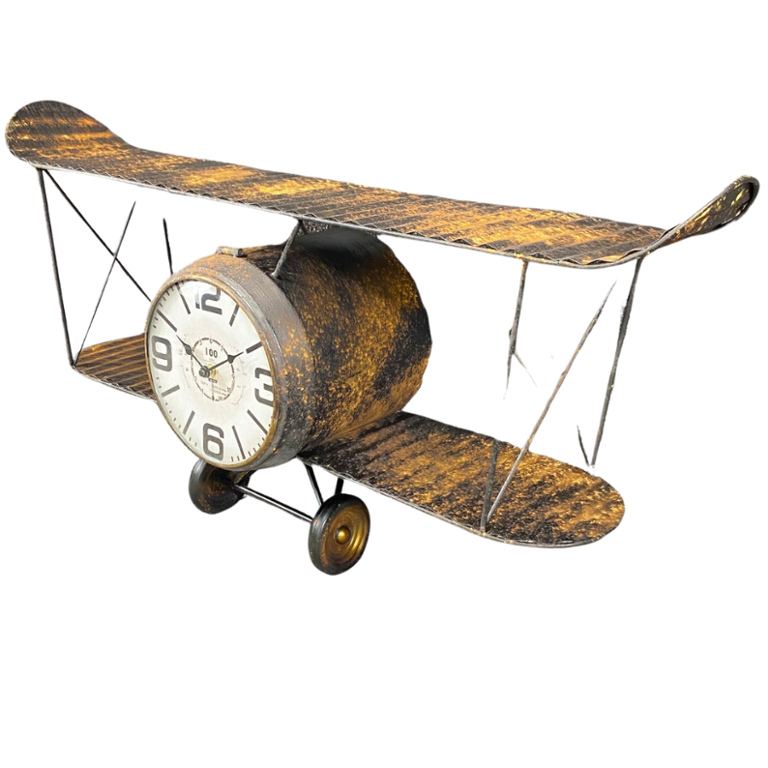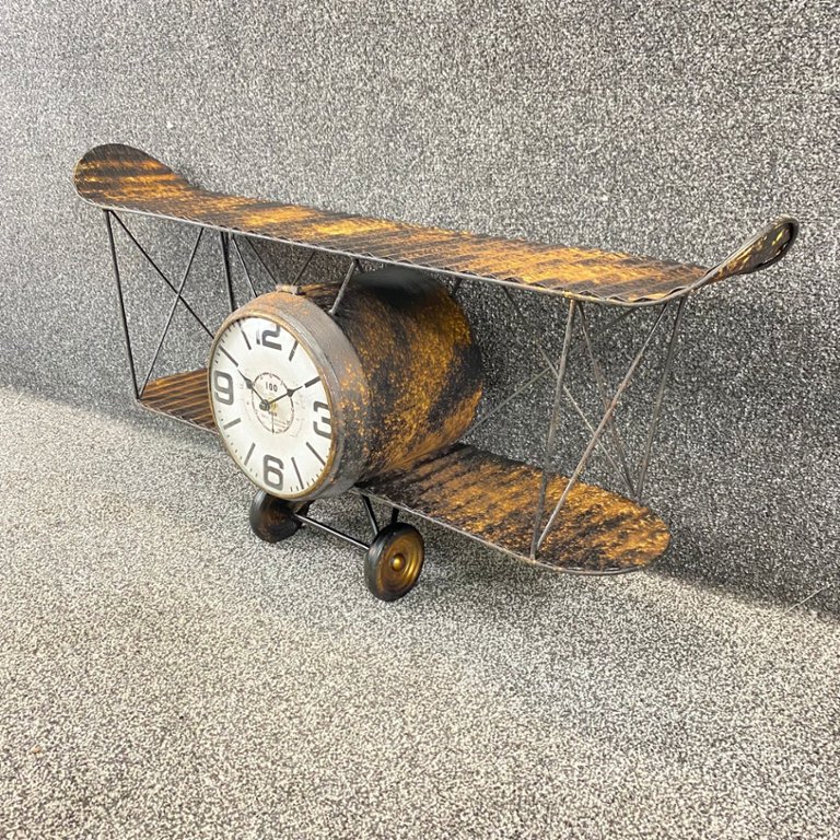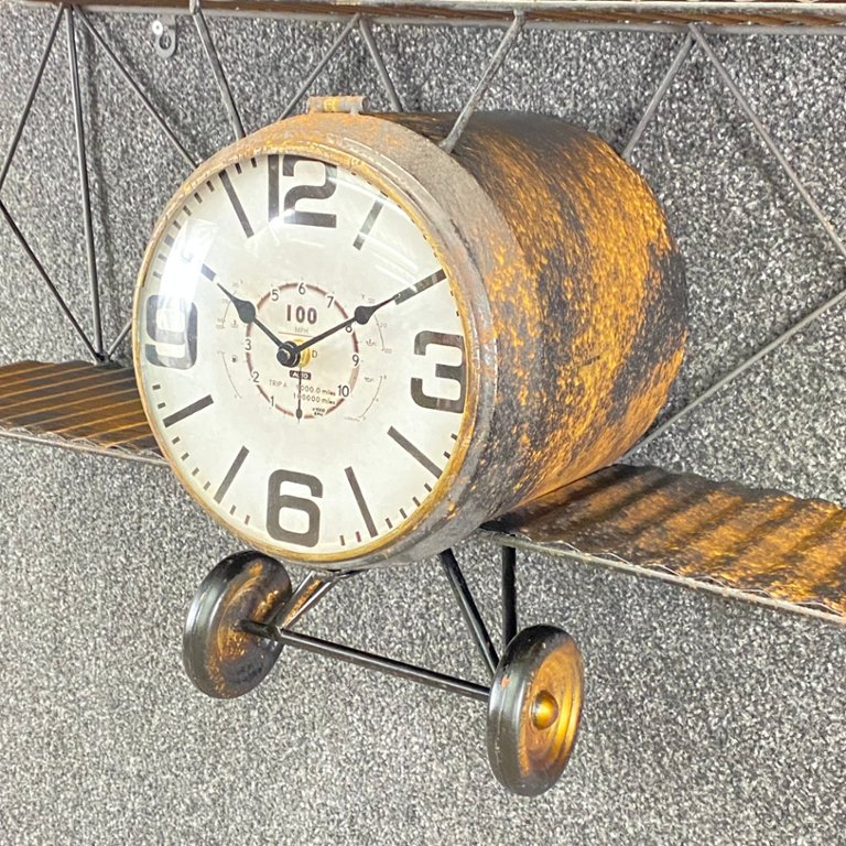 The centrepiece of this piece is the vintage-style clock, which features large, easy-to-read numerals and decorative clock hands reminiscent of classic aircraft instruments. The clock adds a touch of old-world charm while also providing accurate timekeeping for your convenience.